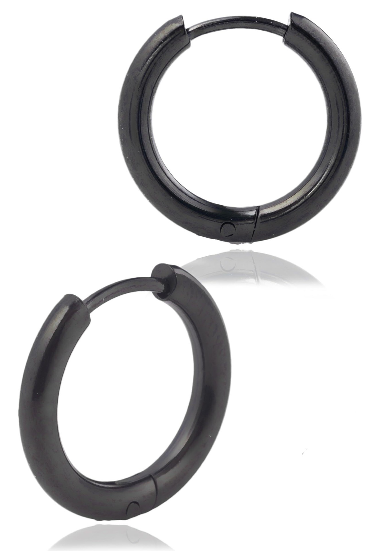 【Puente】ピアス フープピアス メンズ レディース ステンレス サージカルステンレス 金属アレルギー対応 つけっぱなし 錆びない 両耳 ブラック 黒色 黒 12mm