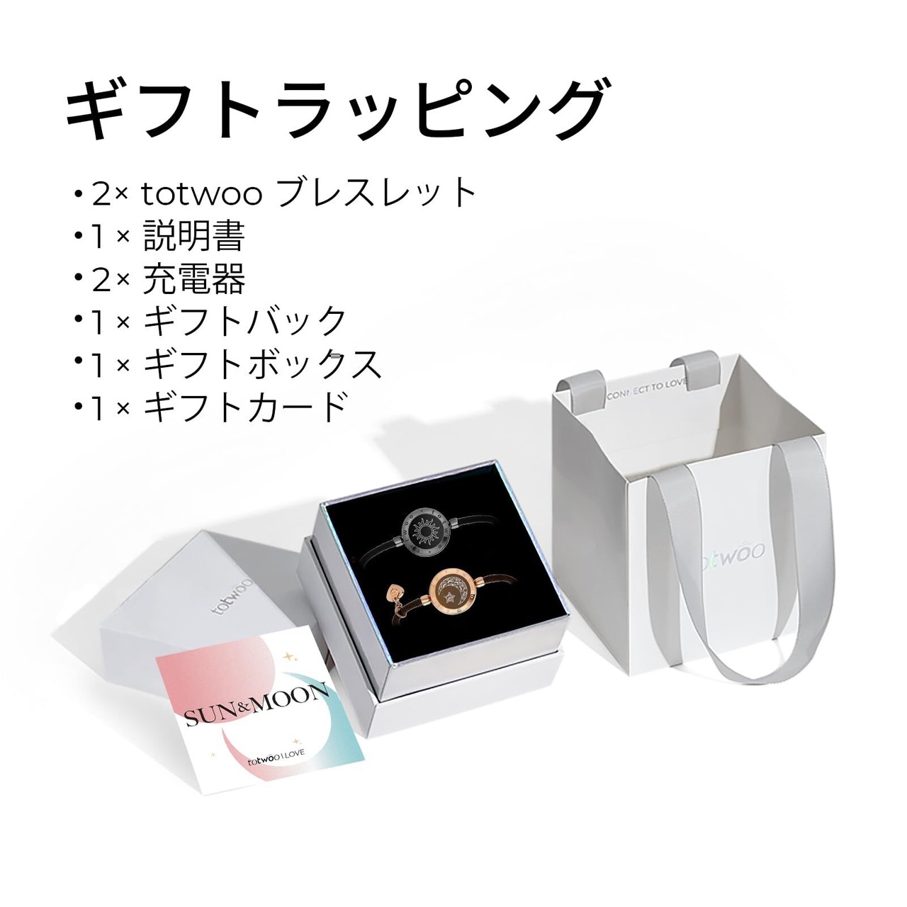 【サプライズを届ける多彩な機能】 TOTWOO専用アプリ連携で秘密のメッセージを送信し、相手をサプライズ!大切な記念日をブレスレットが光と振動でそっとお知らせします。さらに着信通知機能で、大事な電話を見逃しません。二人の距離をもっと近づける、特別な瞬間を創造します。