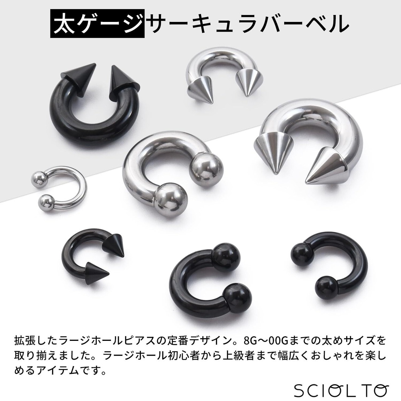【新着商品】[§SCIOL TO] (ショルト)サーキュラーバーベル ラージゲージ ボディピアス [00G~8G] イヤーロブ ヘリックス 耳たぶ 軟骨ピアス ステンレス