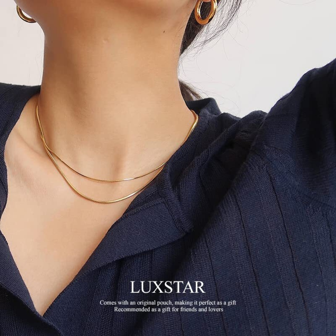 [LUXSTAR] ネックレス スネークチェーン 細め 2mm メンズ レディース 金属アレルギー対応 18K コーティング サージカルステンレス