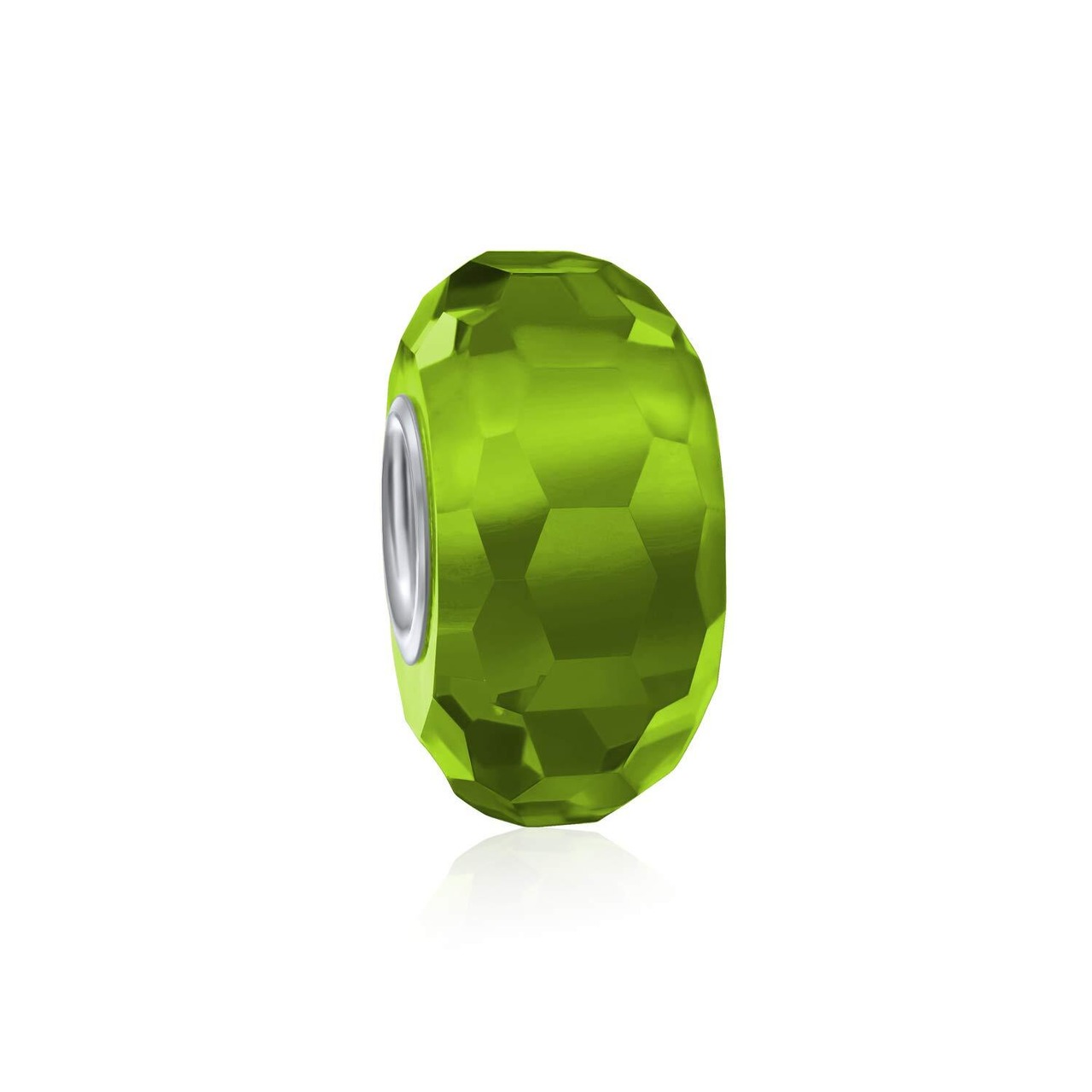 8月生まれの方も、この多面的なシミュレートされたペリドットグリーンのチャームとスターリングシルバー、5mmのネジ切りされていないコアを気に入っている方も、このビーズはあなたのビーズストーリーに完璧に追加されるでしょう。