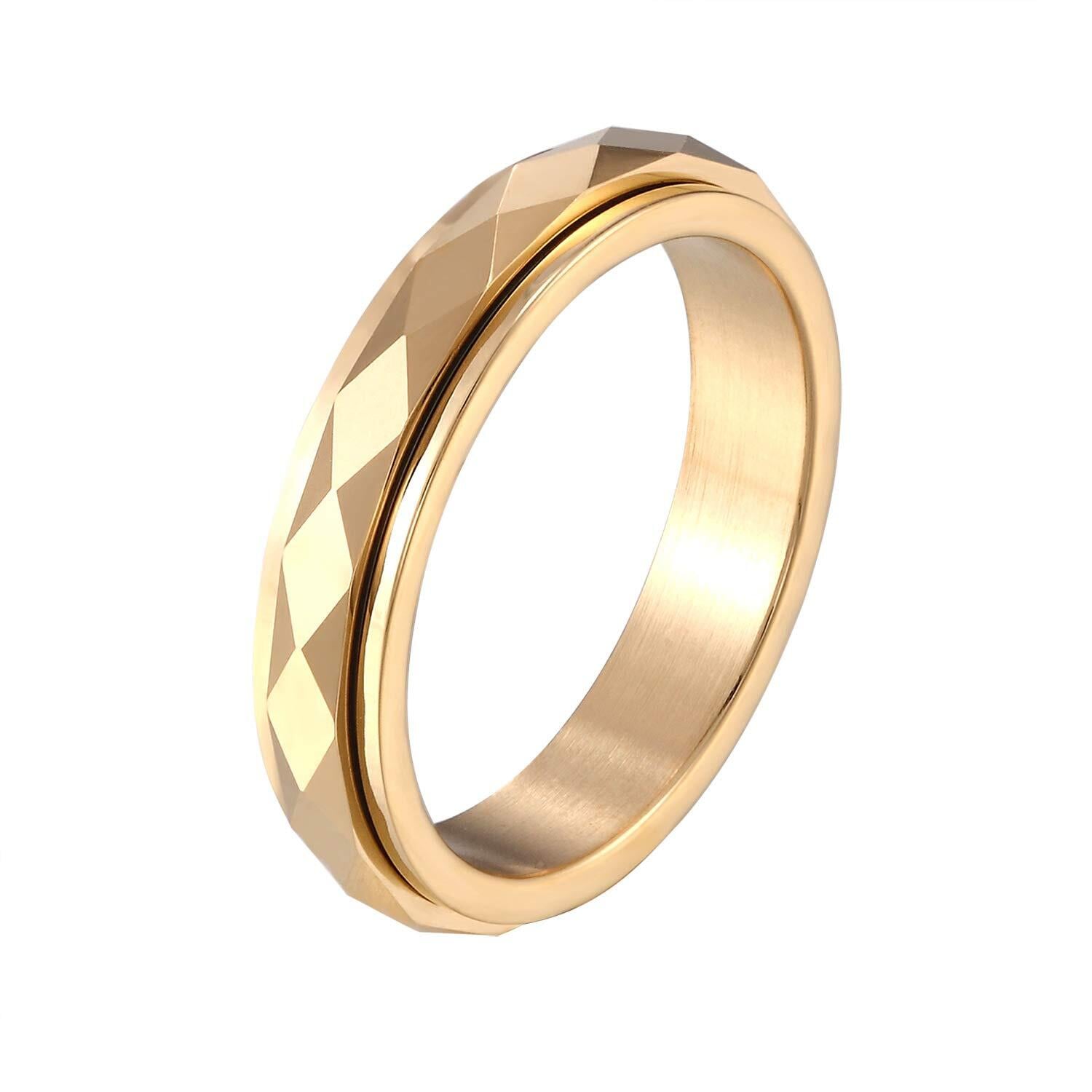「Rockyu 指輪」 タングステン リング タングステン回転-金色 指輪 12号(指周り:52mmに合う) タングステン比重:金とほぼ同じ、硬度:ダイヤモンドに匹敵、タングステンは耐久性に優れ、傷がつきにくいため、いつまでもその高度な輝きを失いません。