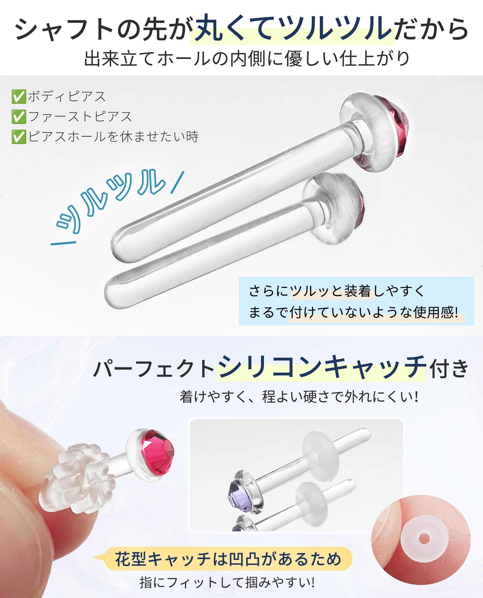 【つけっぱなしの新定番!!強化ガラス製ピアス】当店で大人気のガラスピアスにキュービックジルコニアが付いた新商品が入荷しました!! 内容:ガラス製ピアス4本 + シリコンキャッチ16本(リング型/花型) + 収納ケース1個 + オリジナルポーチ1個 ※軸長10mm/12mmの2種、ヘッド直径3.5mm、太さ(ゲージサイズ)は14G(1.6mm)/16G(1.2mm)/18G(1.0mm)/20G(0.8mm)の4サイズをご用意。耳たぶ、軟骨ピアスとして幅広くお使いいただけるスタンダードタイプです。