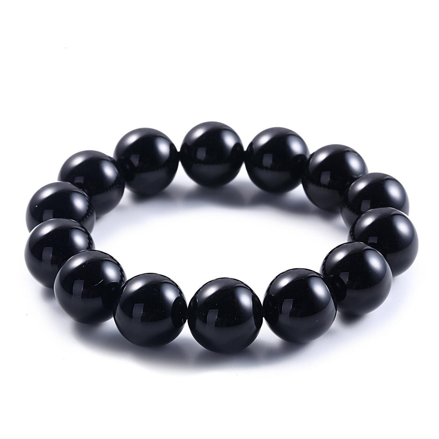 [京珠堂] 厄除け 魔除け 極上5A 黒瑪瑙 オニキス 天然石 ブレスレット (14mm, 16)