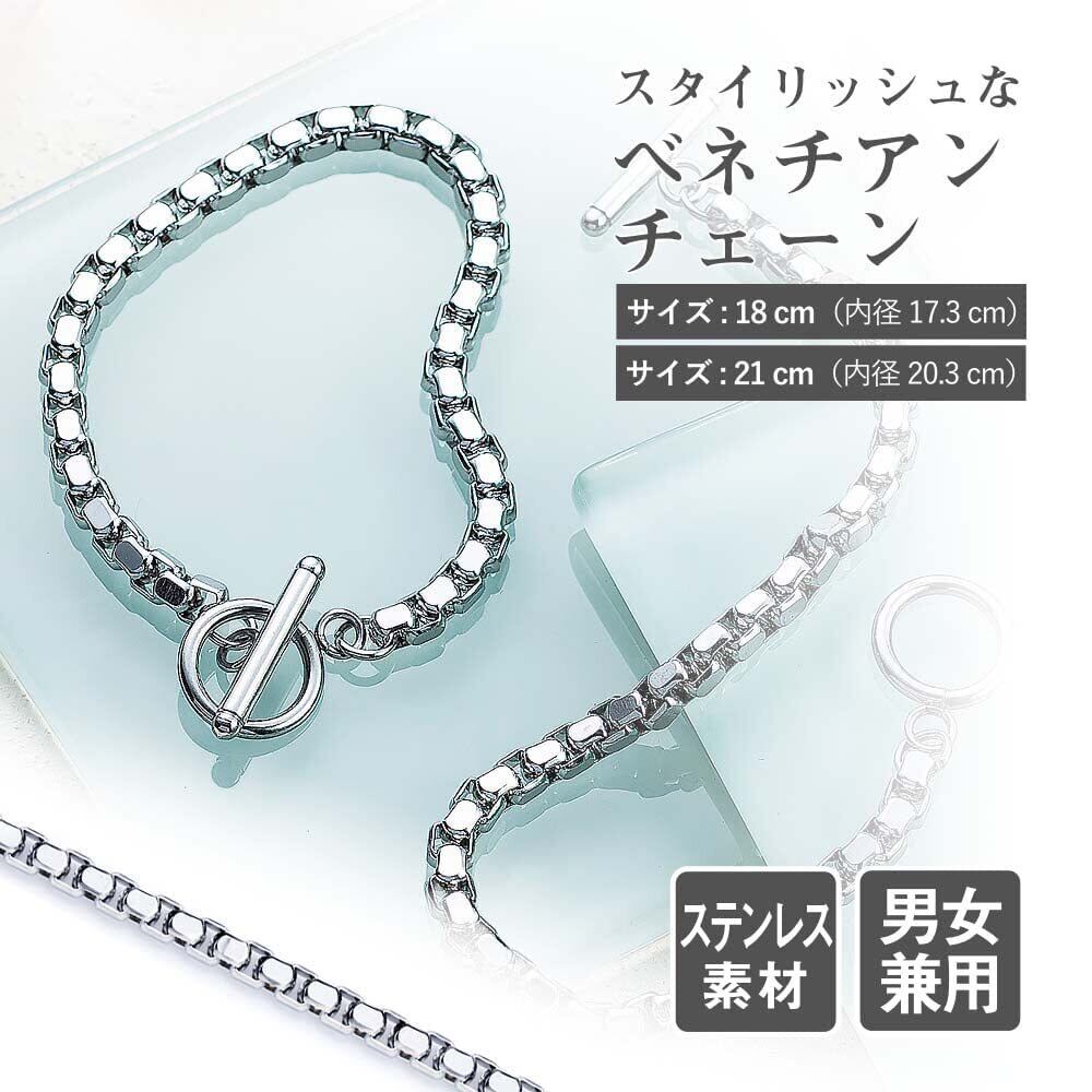 ベネチアンチェーン特有の規則正しく並んだ美しく綺麗なデザイン。ユニセックスで高級感漂うデザインなので男性、女性問わず着用可能です。