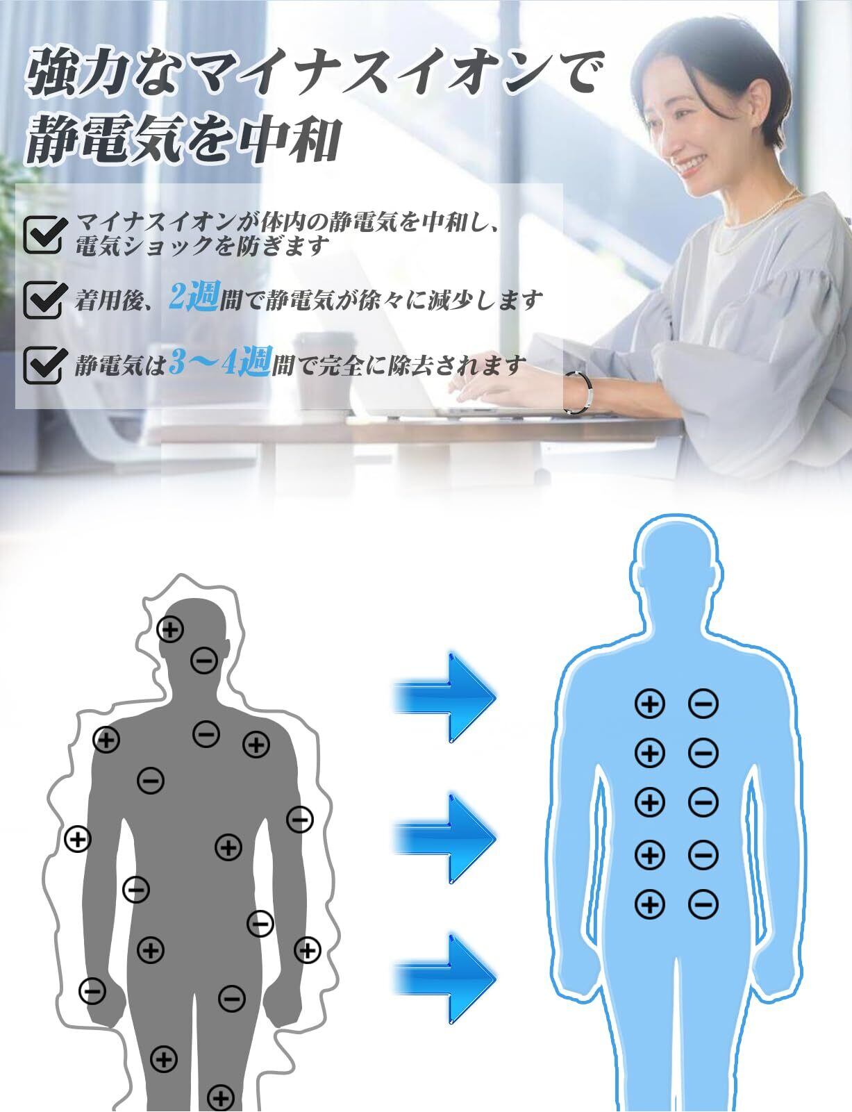 【負イオンコーティングで健康サポート】負イオンコーティングは、正電荷と負電荷のバランスを整え、人体に発生する静電気を軽減します。これにより、血行促進や疲労回復にも効果が期待できるため、単なる静電気防止アイテムとしてだけでなく、健康アクセサリーとしてもご使用いただけます。着用し続けることで、長期的な健康維持に寄与します。