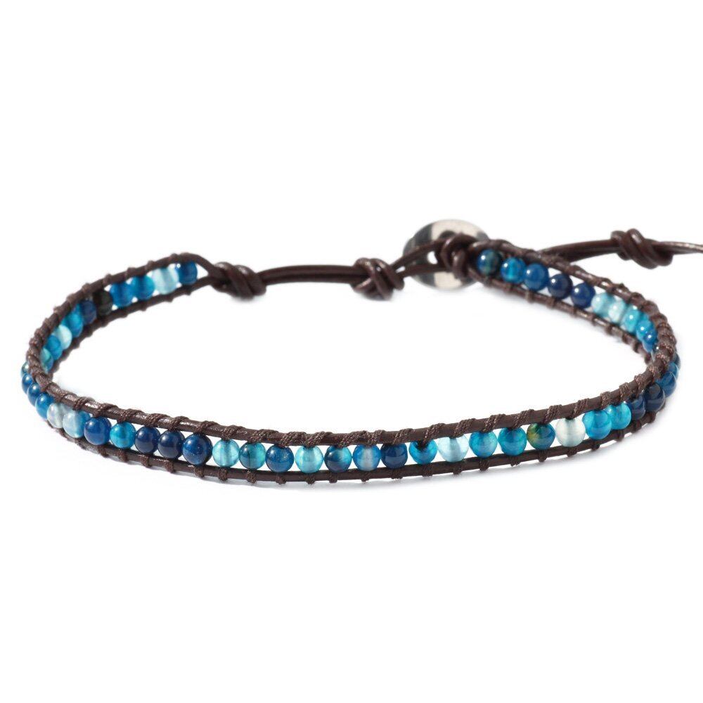 Binich(ビニッチ) 天然石 レザー アンクレット メンズ レディース フリーサイズ (ブルーアゲート×ブラウン)