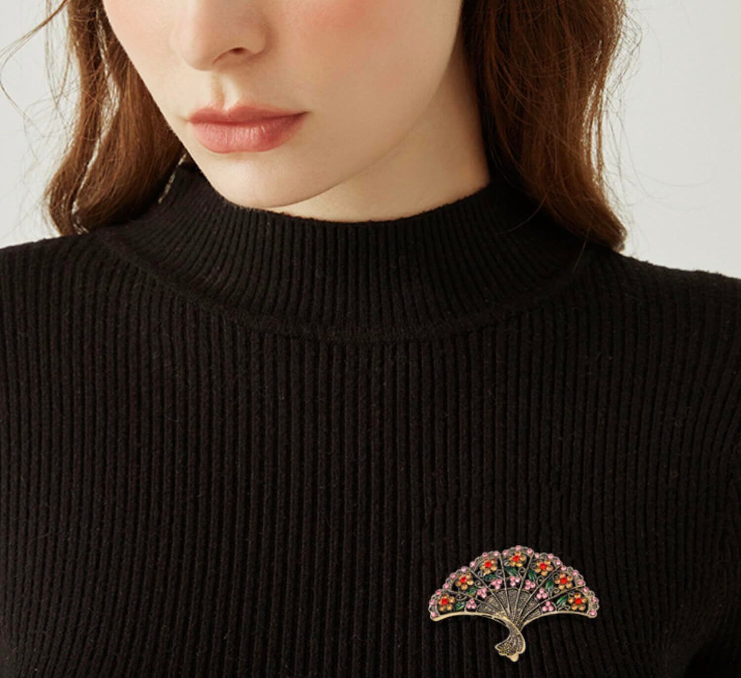 フラメンコ ブローチ シージョ留め アバニコ 扇型 アクセサリー スペイン風 ステージ衣装 花柄 ピンバッジ ダンス用アクセ レディース [J's select]