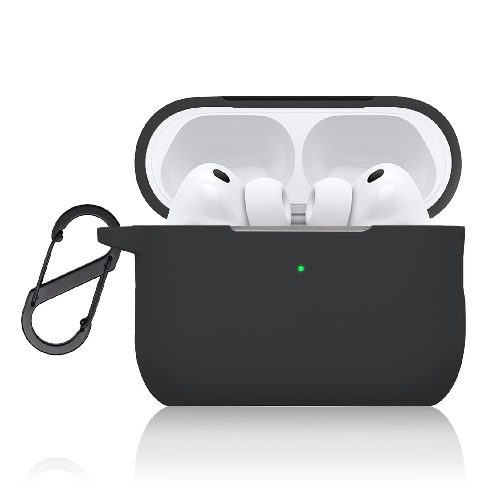 PRODELI For AirPods Pro 3 専用 ケース カバー 耐衝撃 キズ防止 カラビナ付き シリコン素材 イヤホンケース 装着充電可能 柔らかい 紛失防止 軽量 airpods pro 第3世代 用 保護カバー(ブラック)