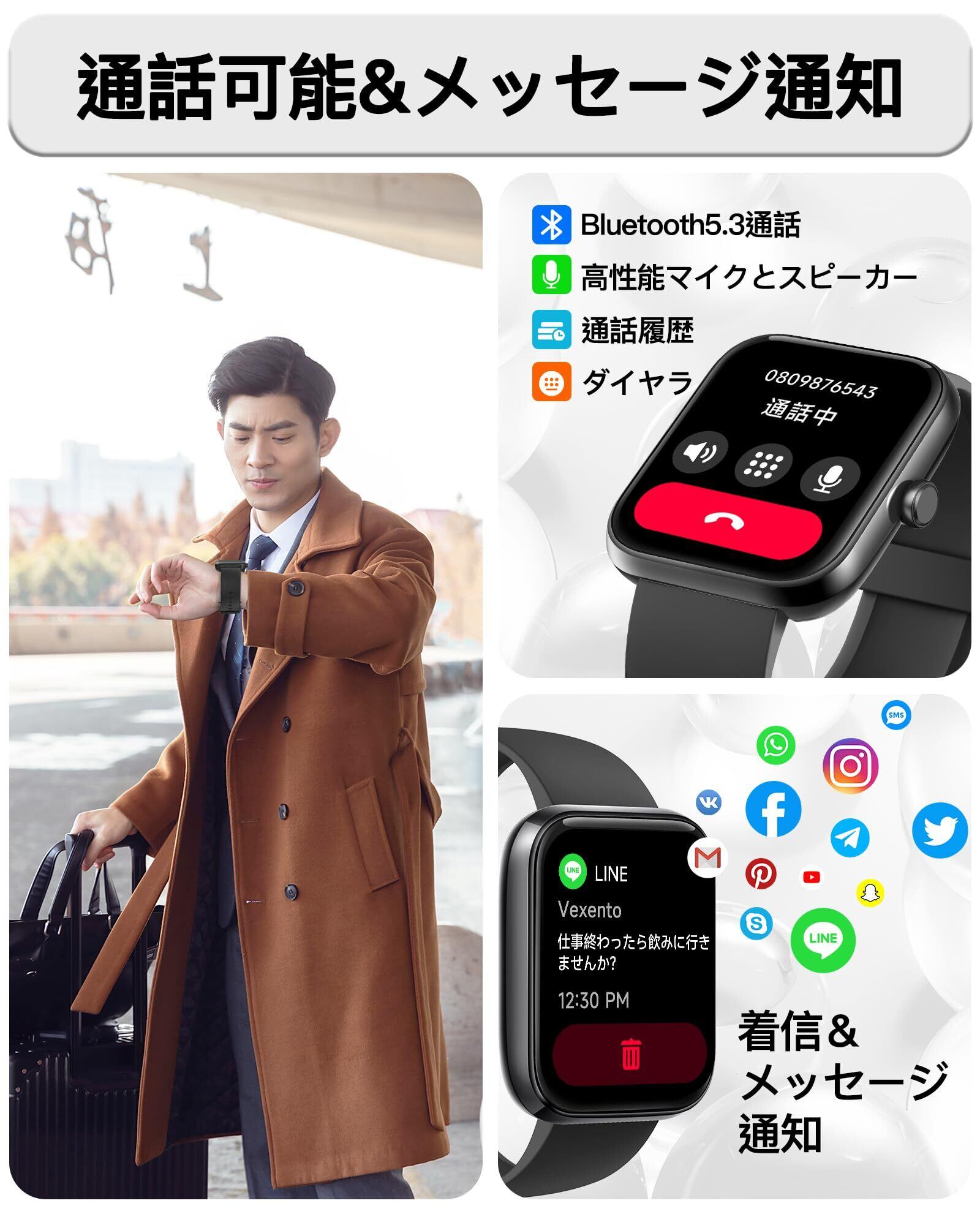 【Bluetooth5.3搭載・通話/通知/音声アシスタント対応】 最新のBluetooth5.3チップを採用し、安定性と省電力を両立。スマートウォッチ単体で通話の発信・受信・履歴確認が可能なため、運転中や作業中でもスムーズに応答できます。さらに、LINEやX(旧Twitter)、SMSなどの通知もリアルタイムに表示され、差出人名や内容をすぐに確認可能。音声アシスタント機能にも対応しており、画面に触れず声で操作や情報取得ができ、忙しい日常をスマートにサポートします。