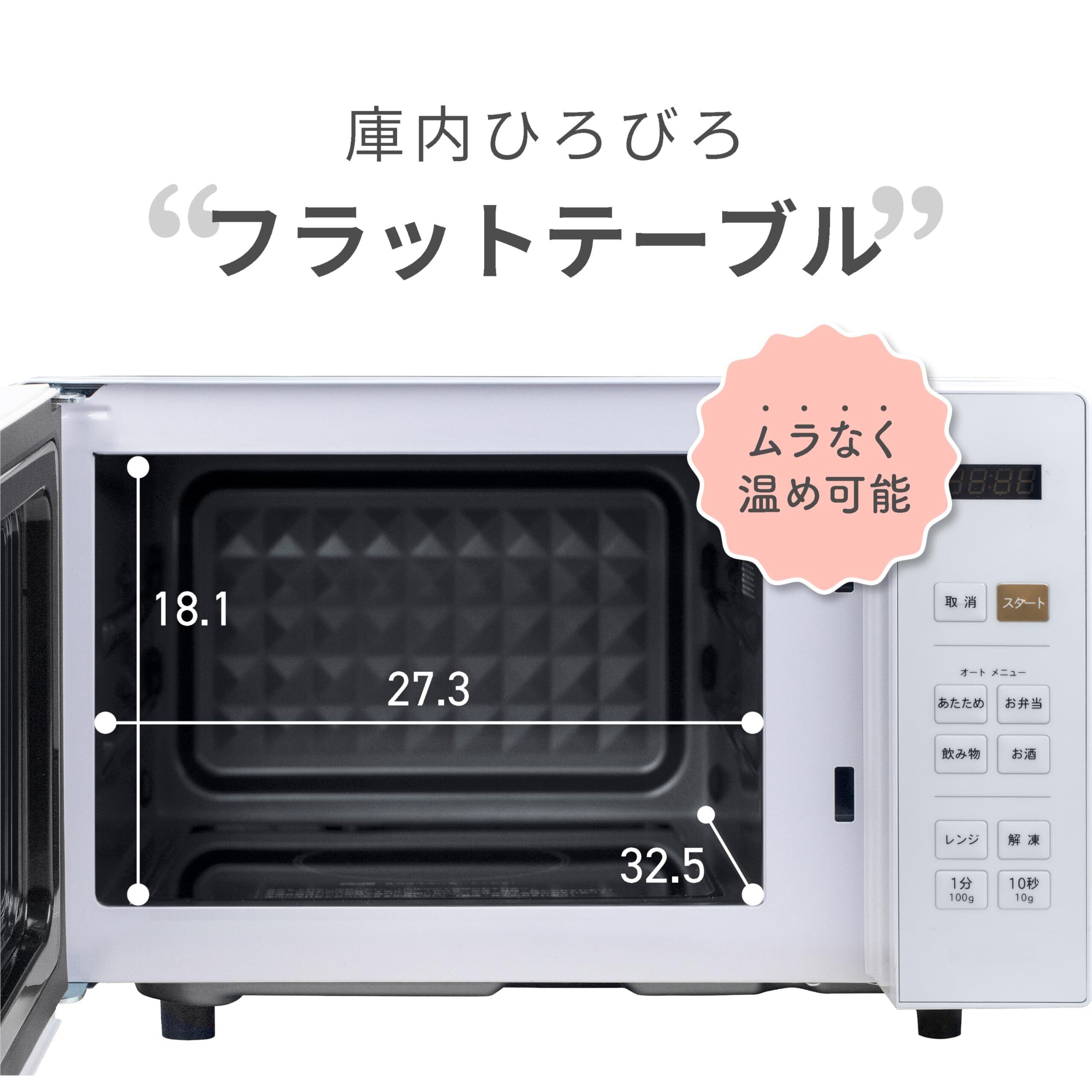[山善] 電子レンジ 18L 単機能 一人暮らし 二人暮らし ヘルツフリー フラットテーブル オートメニュー4種類 全国対応 タイマー機能 チャイルドロック搭載 ホワイト PRW-F180(W)