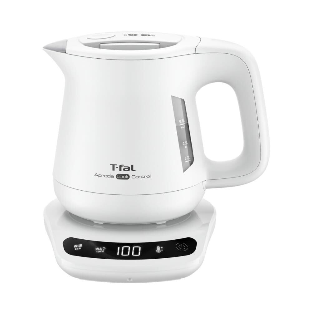 ティファール 電気ケトル 0.8L 温度調節 9段階 マットな質感のデザイン 転倒お湯もれロック 「アプレシア ロック コントロール ホワイト」 省スチーム設計 保温 KO8601J0
