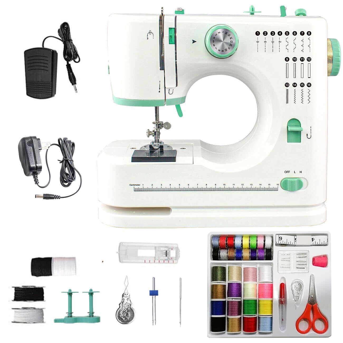 JUNHOTAI ミシン コンパクト 単針・二本針兼用 電動ミシン ミシン アップグレード静音モーター PSE認証済み 家庭用電動ミシン 日常手作り縫い 16種の縫い目 足踏みと手動2WAY操作可能 返し縫い機能付 LED手元ランプ付 スピード調整可 趣味・手作り・DIY 縫製用42セット付き 日本語説明書付