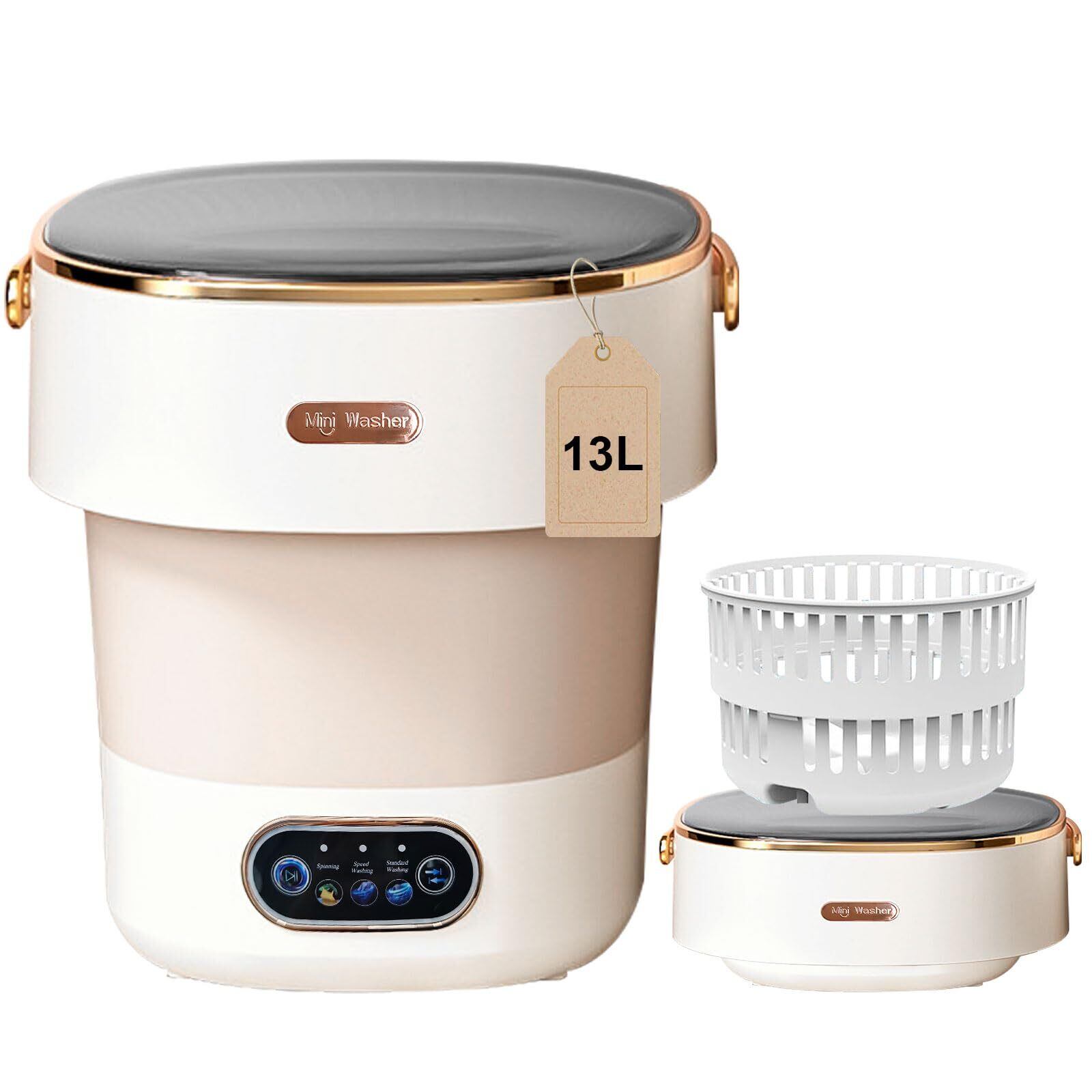 【折りたたみ式】ミニ洗濯機 13L 大容量、40W 静音モーター搭載、ポータブルミニせんたく、ブルーライトによる殺菌消臭機能、小型脱水機能付き、操作カンタン、高速脱水、下着・靴下・ベイビー服・タオル洗浄、一人暮らし・寮・アパート ・旅行に最適、コンパクト 時短 速乾 部屋干し 梅雨対策 ベージュ
