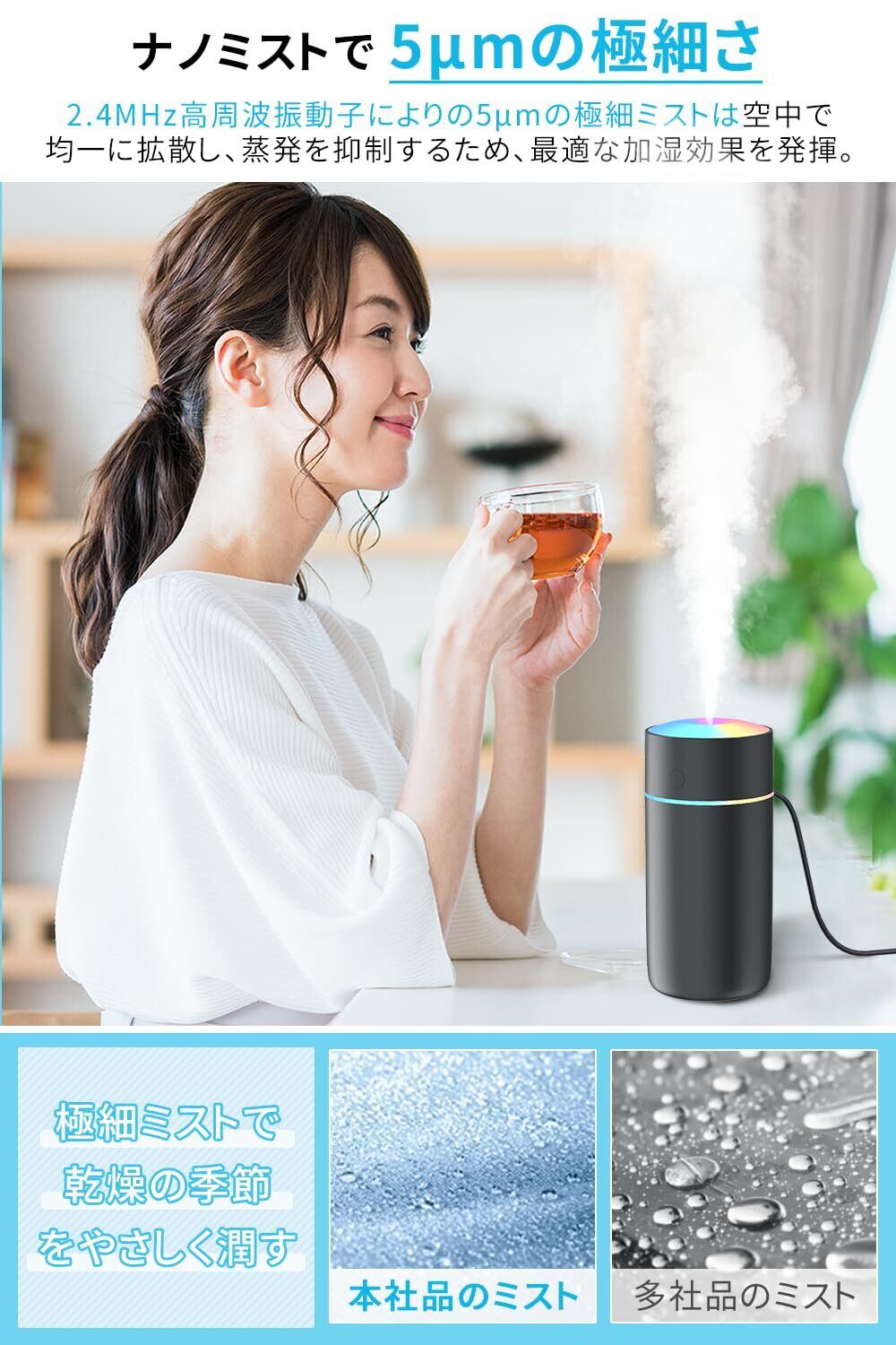 加湿器 小型 卓上 【USB給電式 & 2段階加湿量】 超音波式 車 ペットボトル アロマ対応 ミニ加湿器 大容量350ml 空焚き防止 車載 持ち運び USB コンパクト 小さい humidifier 静音 水漏れ防止 3種類LEDライト アロマディフューザー 次亜塩素酸水対応 バッテリーなし 寝室/オフィス 乾燥/花粉症対策 Geekin-Exdash