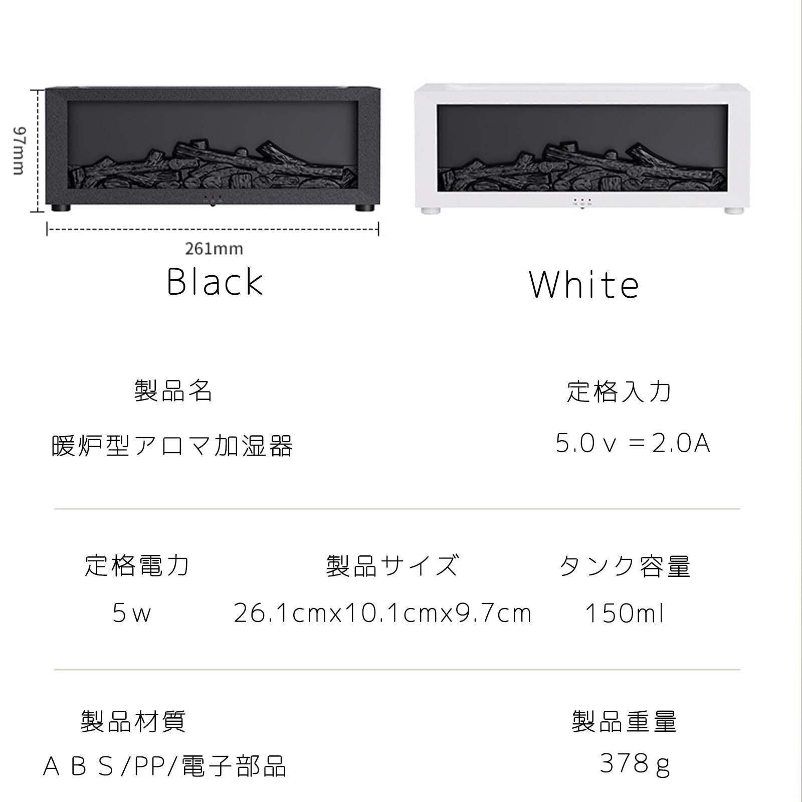 暖炉型 アロマオイル対応 加湿器 たき火 アロマディフューザー 空焚き防止機能 USBType-C給電 (ブラック)