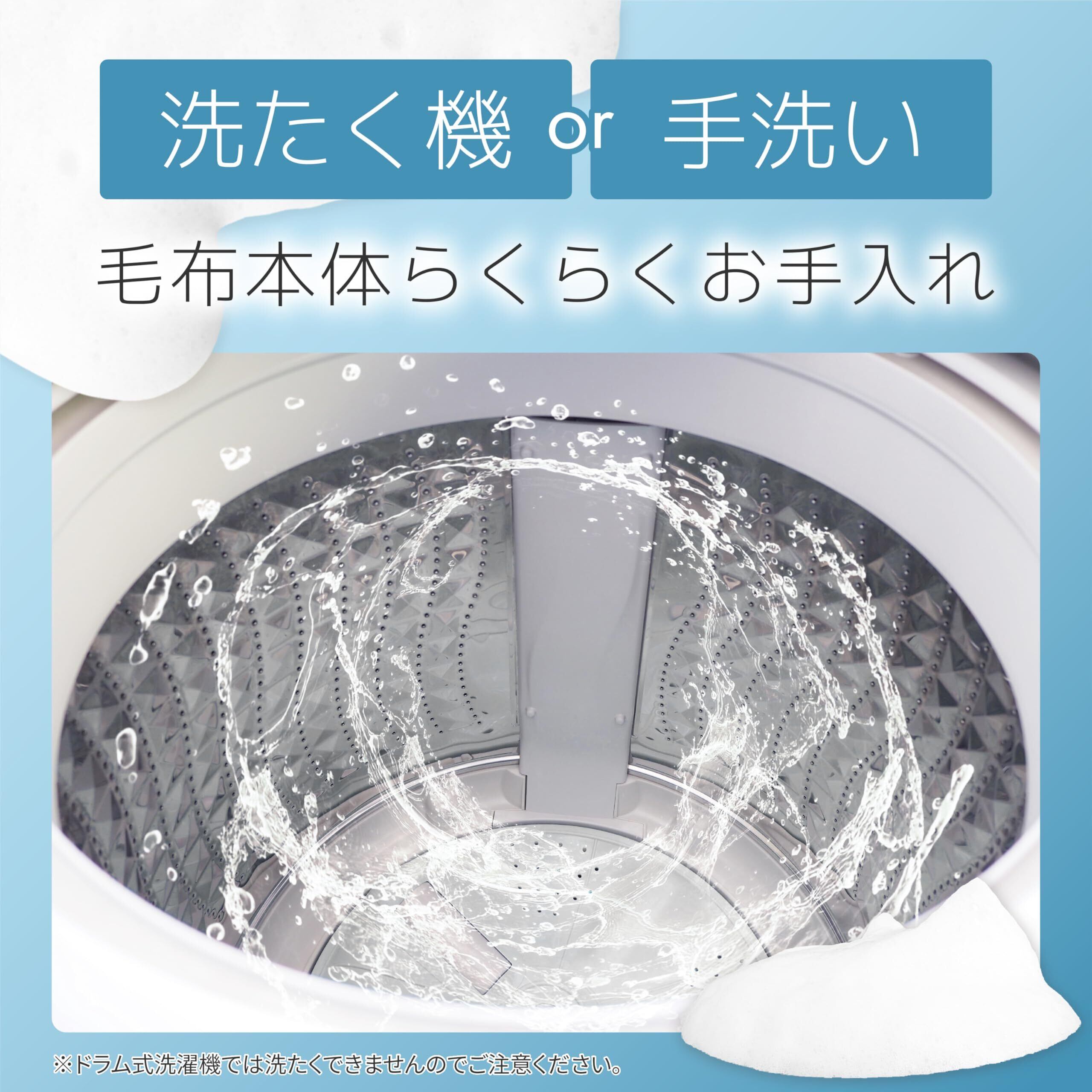 【お手入れ】毛布本体は洗濯機で丸洗い可能なので、いつでも清潔に気持ちよくお使いいただけます。コントローラーを取り外して洗濯してください。※ドラム式洗濯機は対応不可