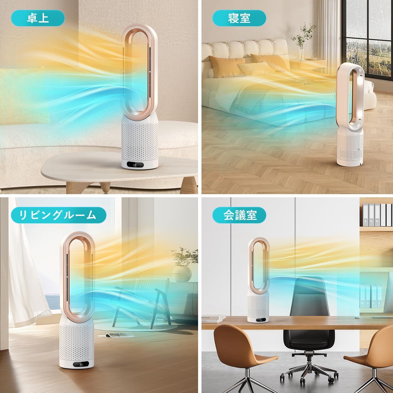 【冷暖兼用·スマート温度制御機能】の羽なし扇風機は最新技術を採用しております。冬には3段階の温風モードと100°の3D首振り機能で、温かい風が部屋の隅々まで届けます。夏には10段階風量調節可能で、ベビールームレベルの微風から全室循環の強風まで、シーンに合わせて自由に調整できます。フルシーズン適用で、夏は涼しく、冬は暖かくお過ごしいただけます。