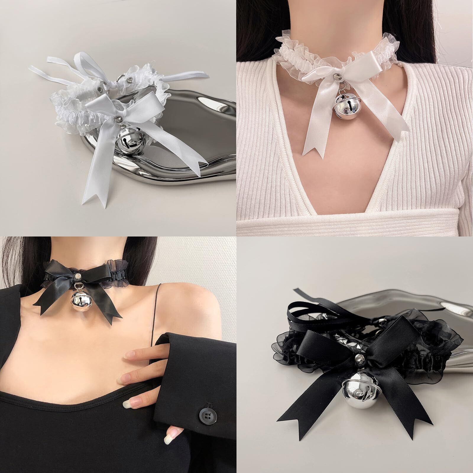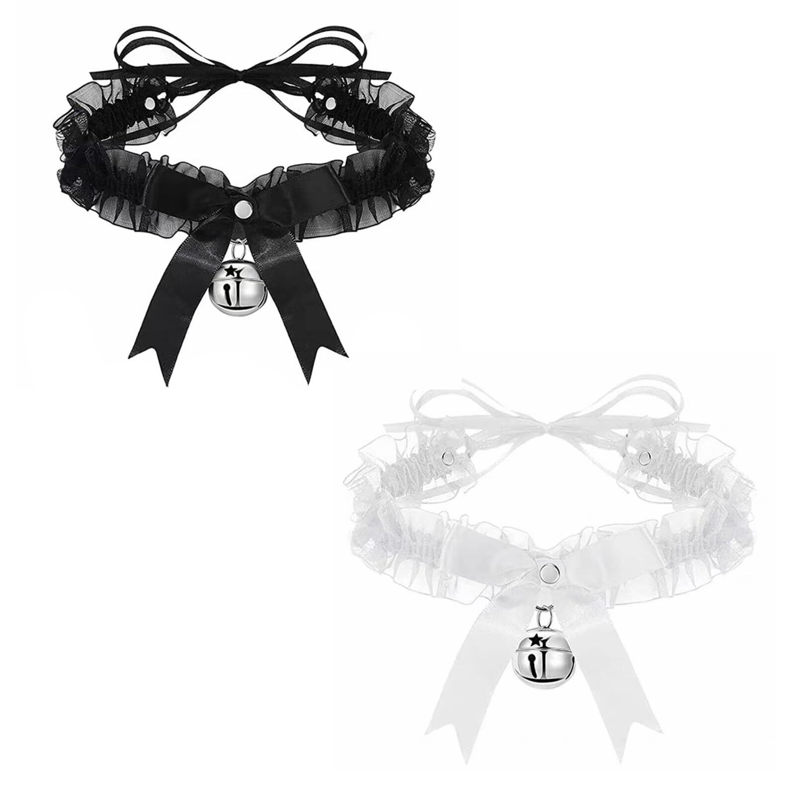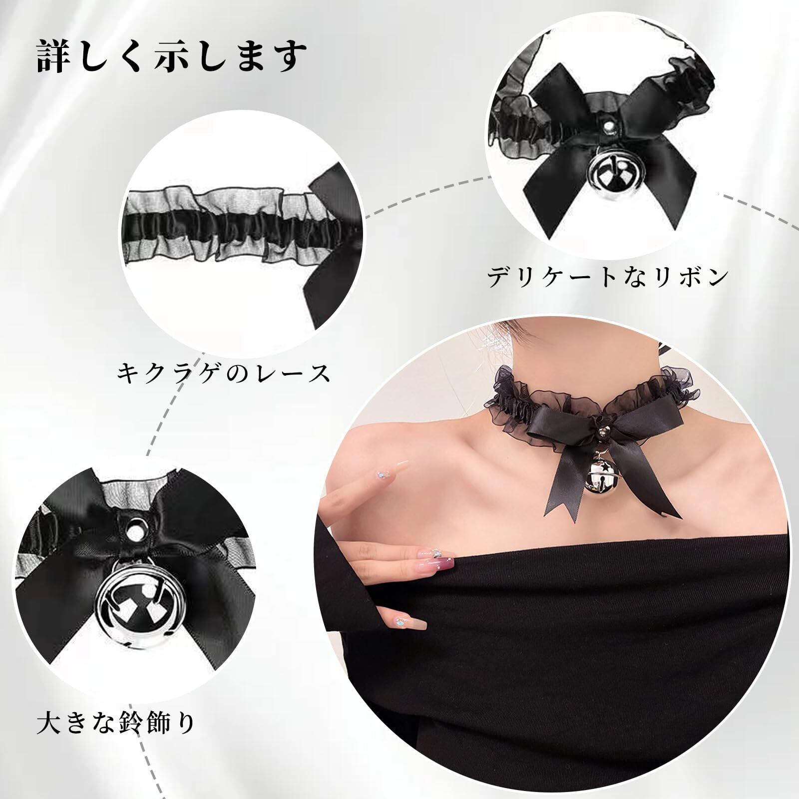 [Coollooda] チョーカー レディース 首輪【2個セット】 レース セクシー 可愛い 蝶結びチョーカー 鈴付き リボン 鈴のチョーカー 仮装 コスチューム用小物 調節可能