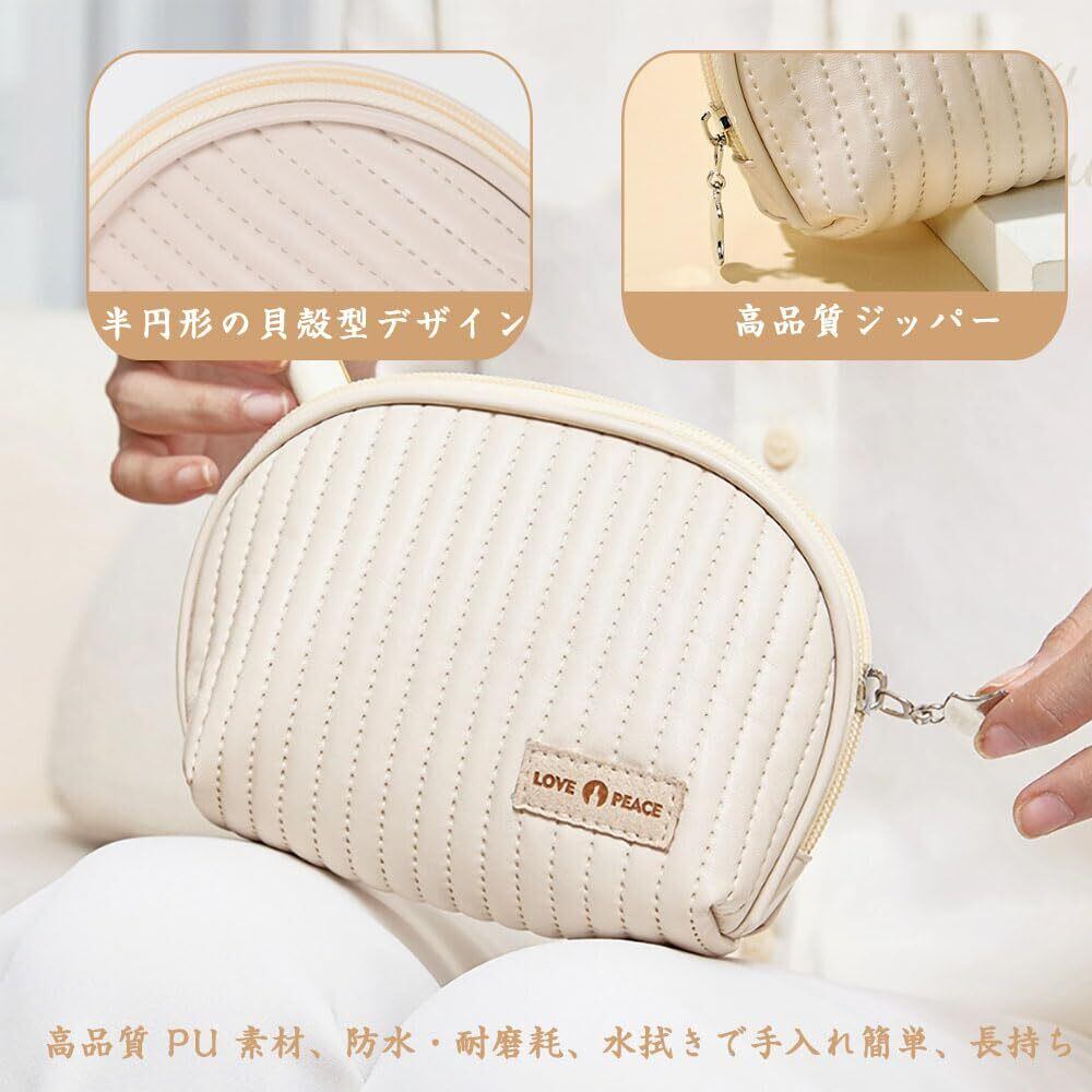 【ポーチ 小さめ 可愛い】このポーチはコンパクトでスペースを取らず、日常の通勤・買い物・旅行にも持ち運びやすい。スーツケースやバッグに収納しやすく、小物や化粧品をきちんと整理できます。 【高品質PU素材】この小さな化粧ポーチは、上質 PU 素材で作られ、クリーム色の皮革風質感があり手触り良好。防水・耐磨耗性があり水拭きで簡単に清掃でき長期使用に耐える。金属ジッパーと美しいジッパープルが特徴で、スムーズに開閉し引っかからない。 【可愛いデザイン】このポーチは、可愛い小さめのデザインで、半円形の貝殻型の独特な形状をしています。女性に人気のデザインで、色調がマッチングしやすく、多種多様な色から選べます。どんなスタイルにも合い、日常や旅行に便利なアイテムです。 【大きな開口部】化粧ポーチは広開口のジッパーを採用。中身が一目で分かり、化粧品や小物の出し入れがスムーズ。朝の化粧や旅行時のアイテム取出しに便利で、時間を有効に活用できます。 【多用途】女性用ポーチで、化粧品・スキンケア・メイク道具はもちろん、アクセサリー・生理用品・小物まで収納可能。軽量で持ち運びやすく、日常・旅行・出勤など幅広いシーンで活躍します。