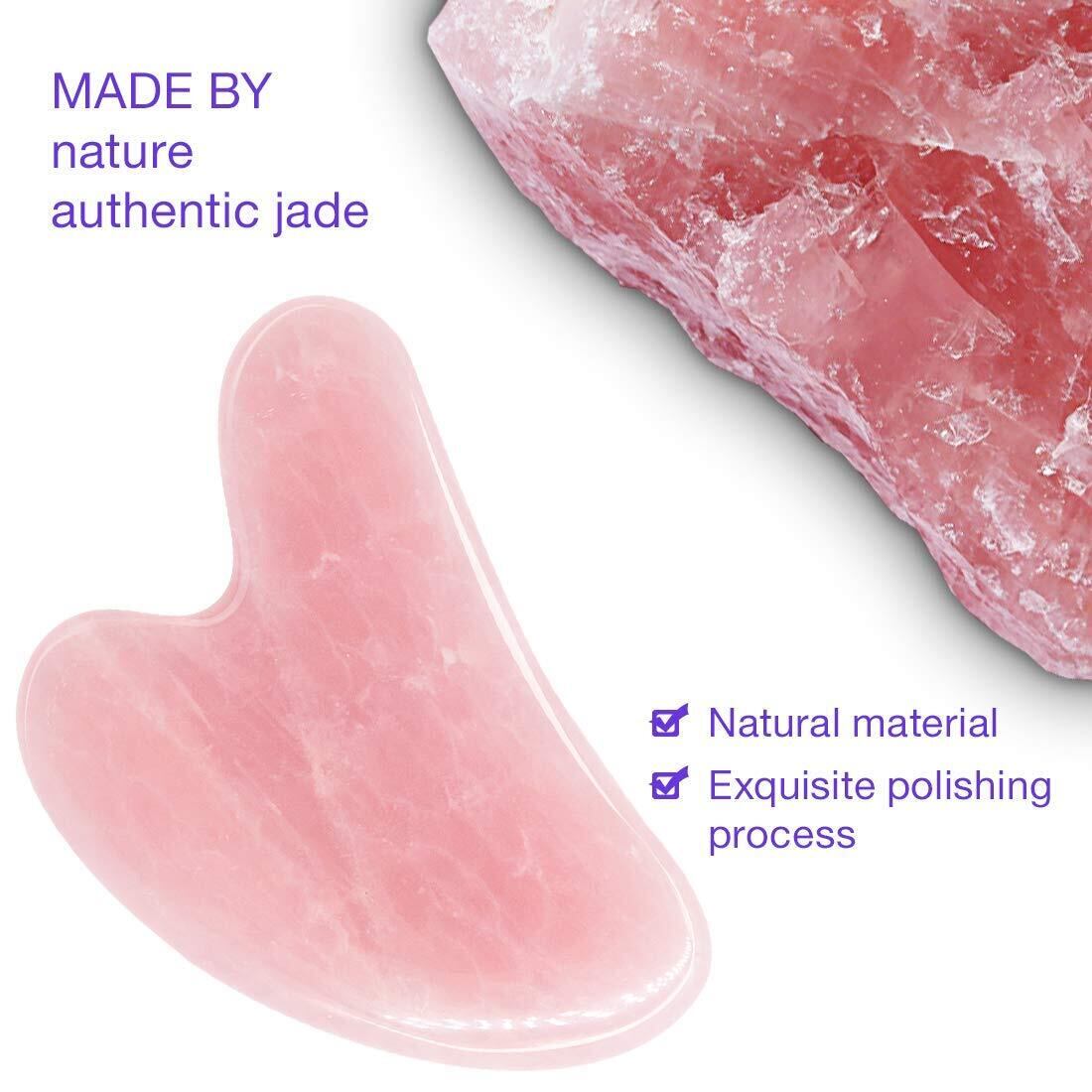 AOVIOANDY Gua Sha マッサージツール ローズクォーツ 翡翠 GuaSha フェイシャルツール Gua-Sha ストーン 首 ボディ スパ 指圧 こすり マッサージ トリガーポイント トリートメント