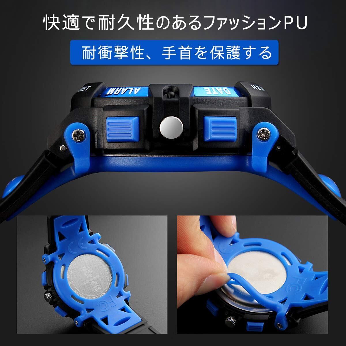 IN Shop 子供腕時計 ボーイズスポーツウォッチ アウトドア多機能防水 アラート 日付曜日表示 デュアルタイム LED アナログ表示 女の子男の子 デジタルウォッチ (ブルー)
