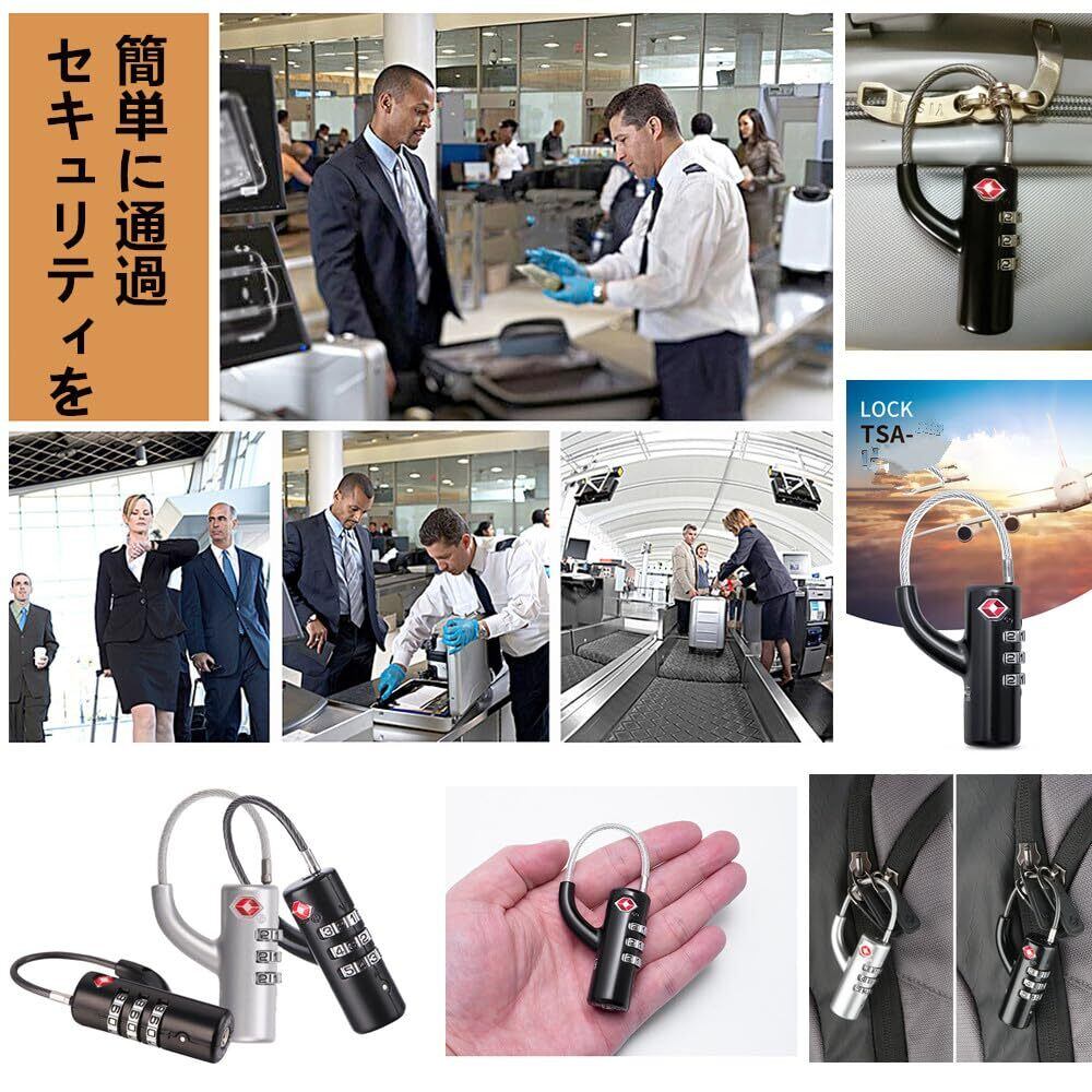 YAVINCOL TSAロック3桁可変式 ダイヤル 南京錠 暗証番号 ワイヤーロック 海外旅行用 TSA鍵ロック ダイヤル錠前 TSAナンバー錠 小型 トラベルロック スーツケース 荷物 ブラック3