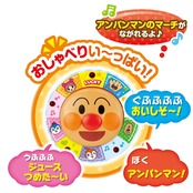 コインを入れてジュースを買ったり、カードをタッチパネルにタッチすると、ルーレットが回って、アンパンマンとなかまたちのおしゃべりとメロディが流れるよ。