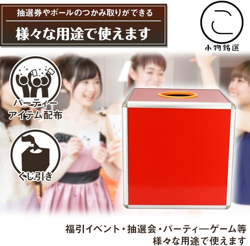 一面が透明な仕様で、見た目もスッキリ。どんなシーンでもマッチするデザインは、イベントの雰囲気をより一層引き立てます。おしゃれでありながら実用的なこのボックスは、参加者の目を引く存在感を誇ります。