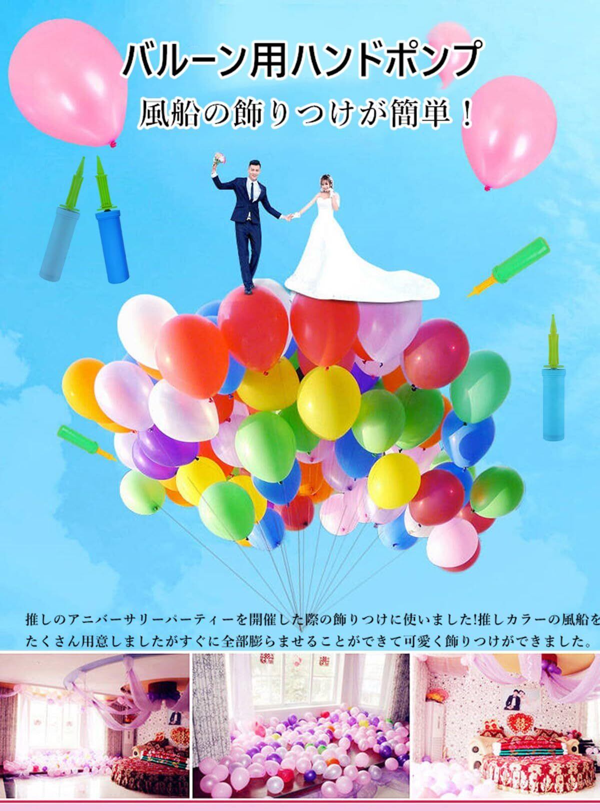家族必須常備品:バルーンを使ったデコレーションに便利なアイテムなります。 サイズをよく考えてデザインしたので大人もちろん、中学生ぐらいでもやってみれるハンドポンプで家族全員遊ぶのは楽しくなります。簡単にバルーンを膨らませることができるので、バルーンを使ったコーディネートの時はバルーンポンプのご使用をおすすめします。家庭用で常備2本てパパなり必須アイテムなります。