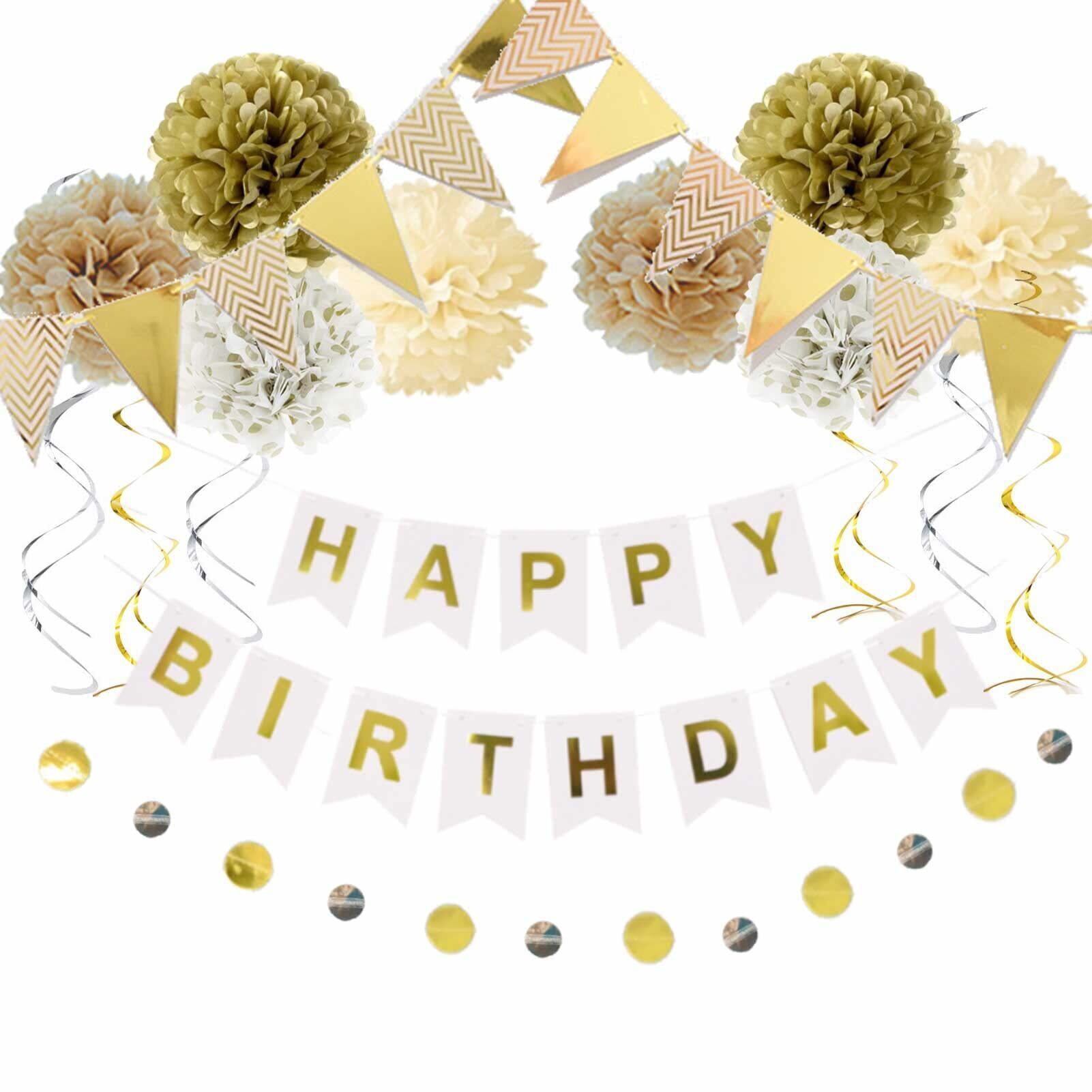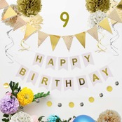 【商品内容】 ポンポン紙花 x8、Happy Birthday バナー、ガーランドx2、ハンギングスワールx6。