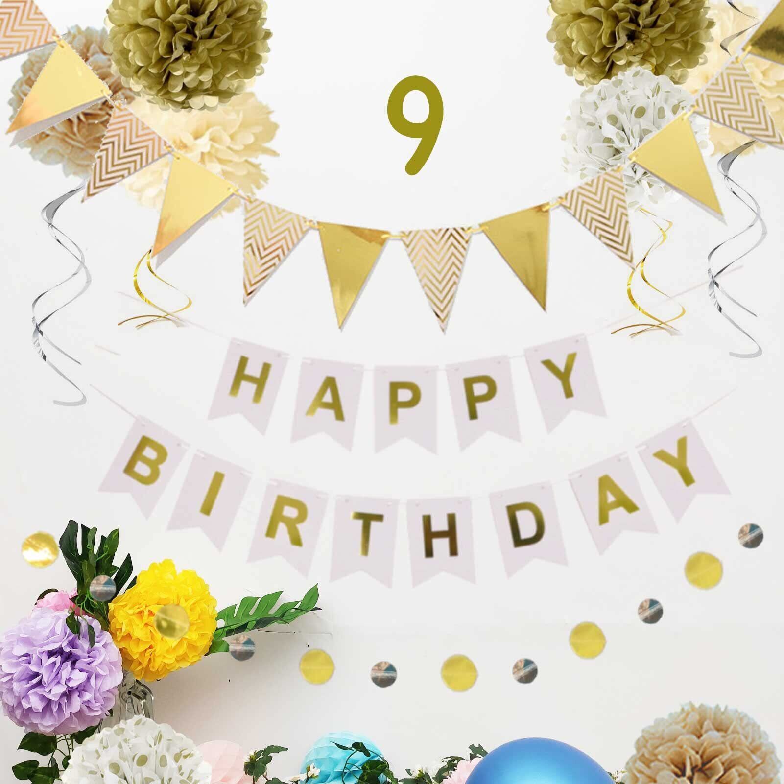 【新着商品】誕生日 飾り付け セット 男の子 女の子 パーティー バースデー デコレーション Happy Birthday レターバナー ガーランド きらきら ペーパー ポンポン 紙花 お食い初め 100日お祝い 飾り 記念日 部屋 撮影 (ゴールド)