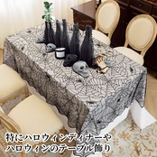 こちらは「Coollooda ハロウィンテーブルクロス」で、137x183cmの大きさが特徴です。クモの巣デザインとレース刺繍が施されたこのアイテムは、ハロウィンパーティーにぴったりの不気味でおしゃれな雰囲気を演出します!特別な日を盛り上げるための必須アイテムです。