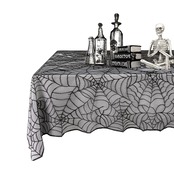 Coollooda ハロウィンテーブルクロス クモの巣テーブルランナー ハロウィン飾り 長方形 137x183cm スパイダーウェブ レース刺繍 滑り止め おしゃれ 不気味 インテリア ハロウイン雰囲気 家庭用 部屋 食卓 お化け屋敷 バー ホテル用にも パーティグッズ