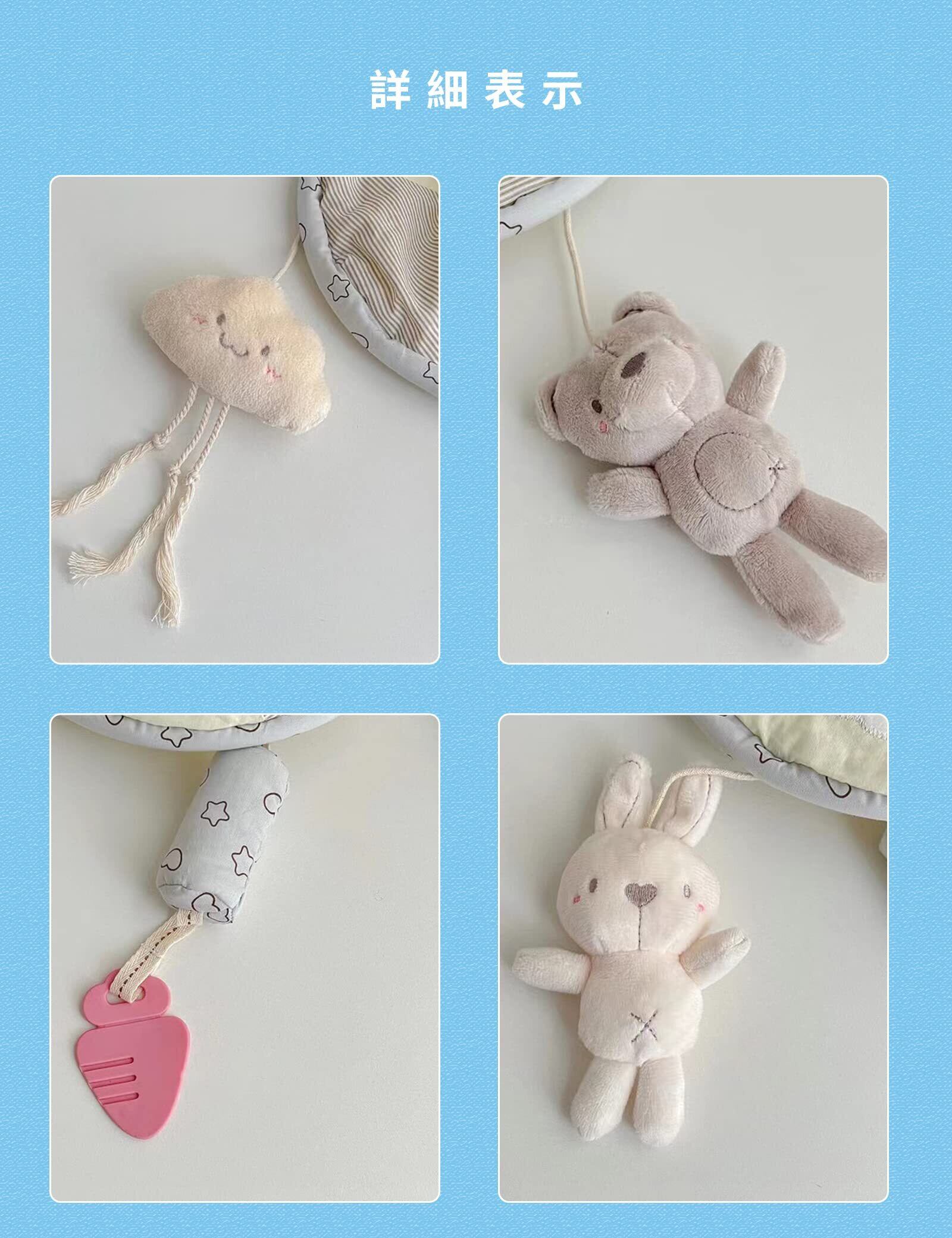 こちらの「ALLMIRA ベビーカー チャイルドシート おもちゃ」は、赤ちゃんを笑顔にする楽しいアイテムです!クマとウサギの可愛らしいデザインが特徴で、赤ちゃんの視覚を引き付けるライトブルーの色合いが魅力です。お出かけ時にも大活躍するこのアイテムで、赤ちゃんの退屈を解消しましょう!