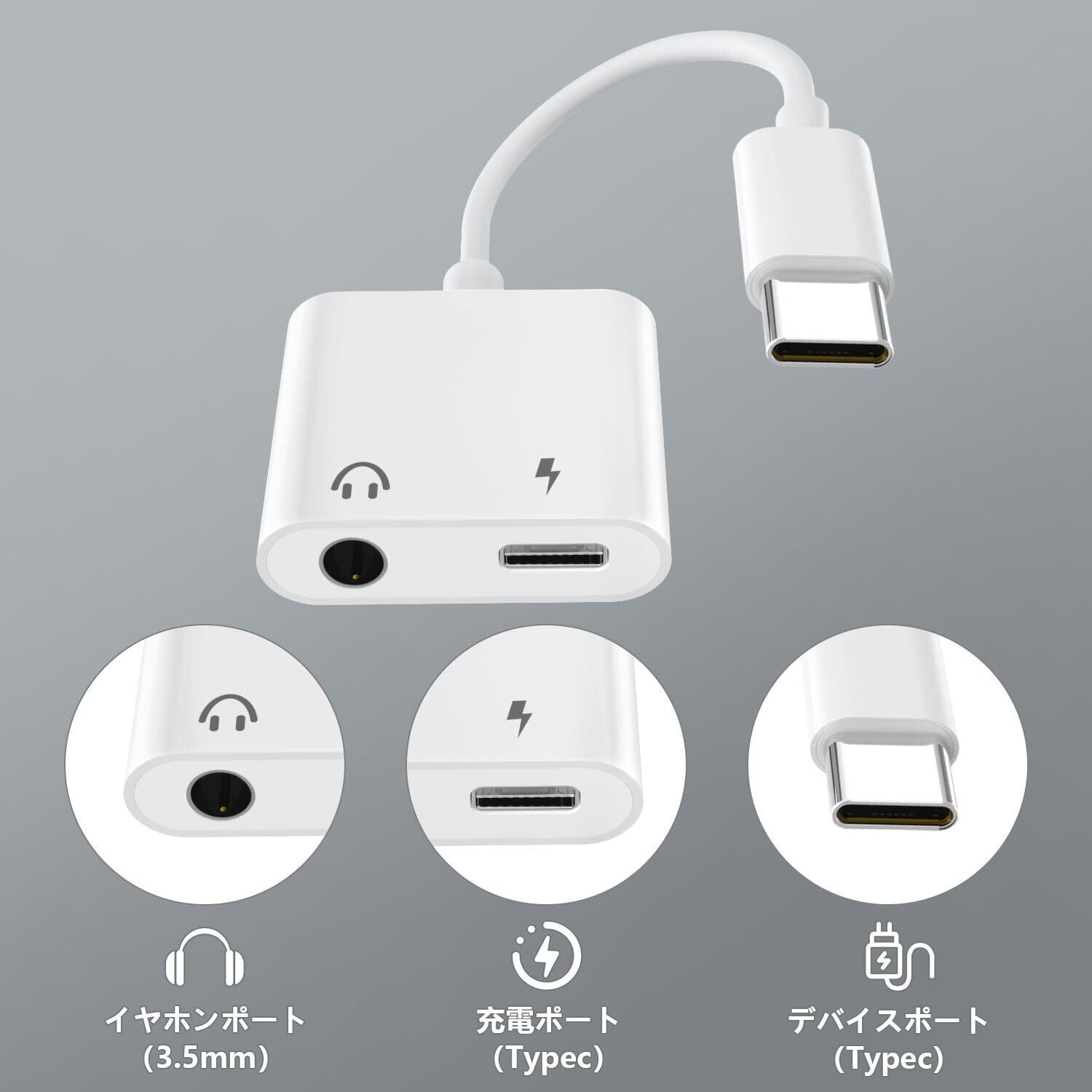 【在庫セール】タイプC イヤホン変換 Type-C to 3.5mm変換イヤホンジャック 充電/音楽 2in1 柔らかエコTPE製 急速充電 音楽再生/通話操作対応