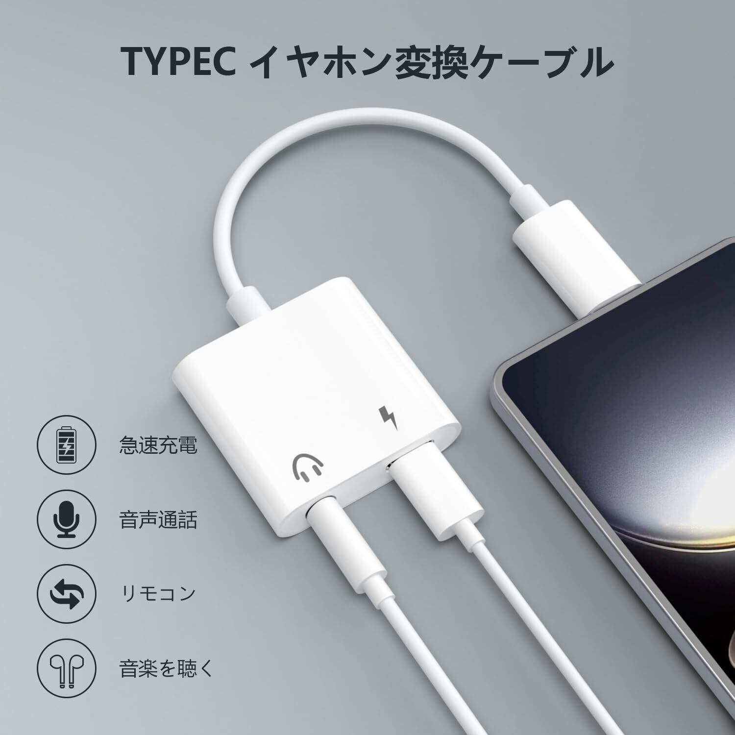 タイプc イヤホン変換 Type-C to 3.5mm変換イヤホンジャック 充電/音楽 2in1 柔らかエコTPE製 急速充電 音楽再生/通話操作対応 Android/Pad/PadPro/ phone15/15pro/windows/Type Cなど機器に対応