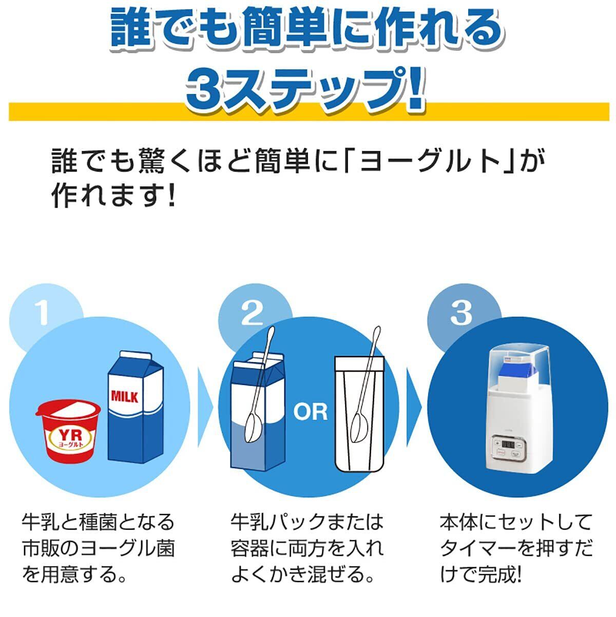 【自家製ヨーグルトを簡単に】独自制御プログラムで日本の牛乳パックに特化し、容器いらずでそのまま牛乳パックを入れることができ、圧倒的な温度安定性を誇るヨーグルトメーカー!夏でも冬でも、失敗する事なく手頃においしくバリエーション豊かな無添加自家製ヨーグルトを楽しめます。