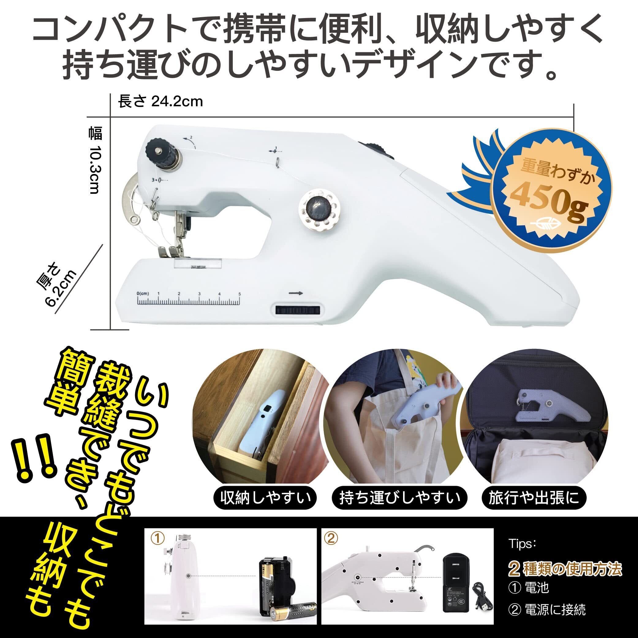 ハンドミシン 初心者向 電動 小型ハンディ コンパクト ミシン 簡単ミシン 片手で縫える ハンディミシン 手持ちミシン 2本糸縫 日本語説明書付き