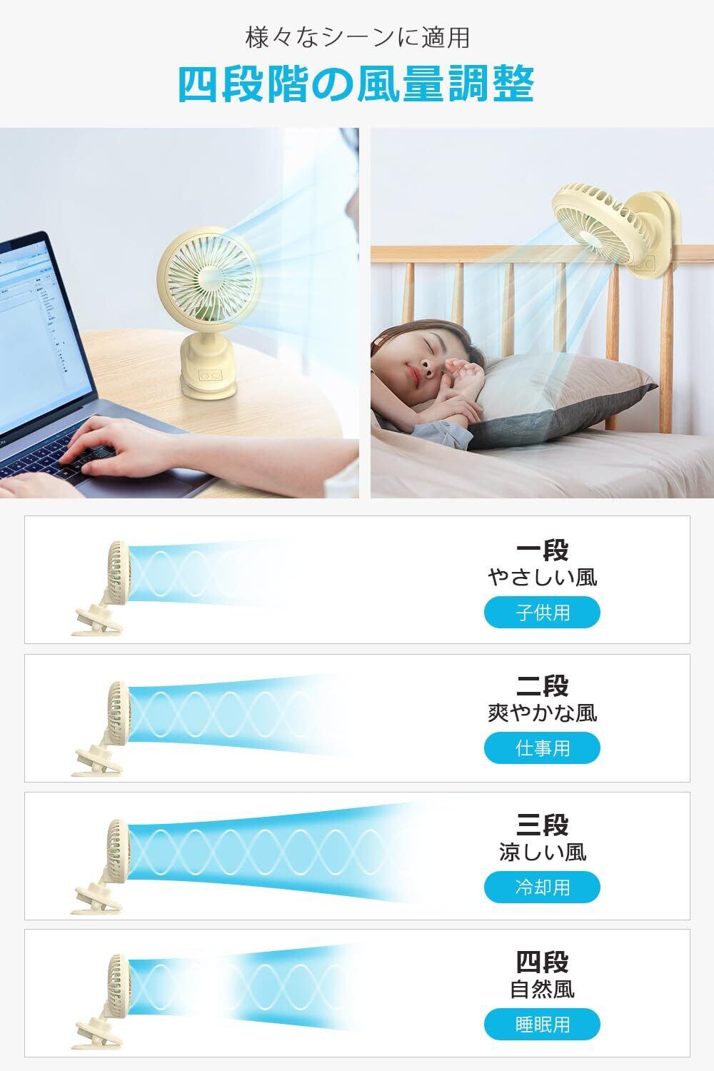 クリップ扇風機 卓上扇風機 充電式 【 7枚羽根ソフト風&3D自動首振り&10000mAh電池内蔵】 USB扇風機 65時間使用可 15db静音 ミニ扇風機 強風 風量4段階調節 携帯扇風機 卓上ファン usbファン 熱さ対策 オフィス/リビング/車用/アウトドア/キャンプ/寝室/トイレ用 (アイボリー)
