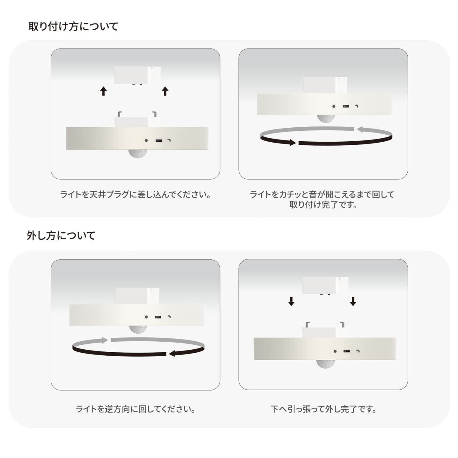 特別な工事は必要なく、すぐに取り付けることができます。壁面スイッチで手軽に操作でき、リモコン不要でシンプルな使い方が魅力です。手間いらずで、忙しい日常の中でもすぐに明かりを得ることができます。