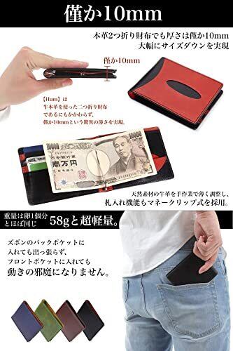 [Hum] 【 オイルアップレザー ( オイルレザー ) 】 超薄型 マネークリップ 二つ折り 財布 本革 メンズ コンパクト ミニマリスト 札入れ 小銭入れ カード入れ