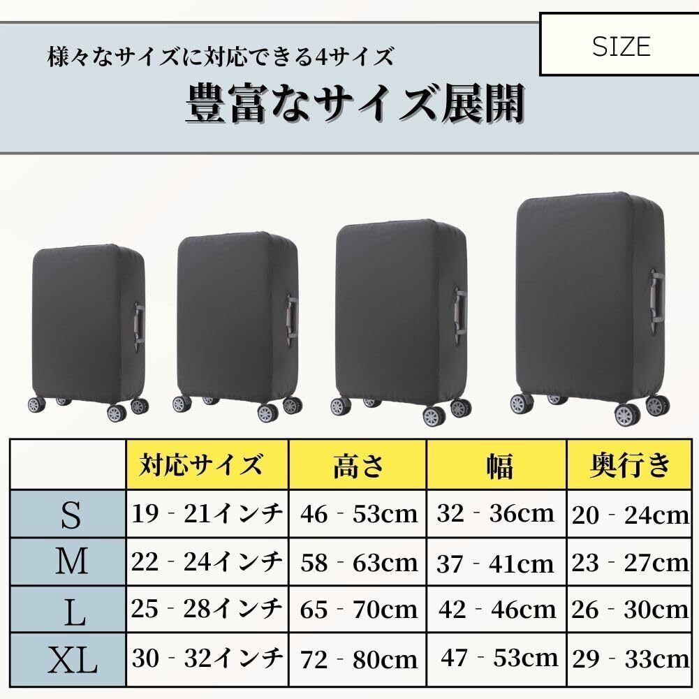 【伸縮性あり】生地は厚みがあり、素材はポリエステルスパンデックス生地を使用しているため、耐久性があり伸縮性も非常に高く劣化や変形が少ない生地です。4サイズあるためいろんなサイズのキャリーケースに対応可能。ケースの形や大きさにぴったりフィットします。