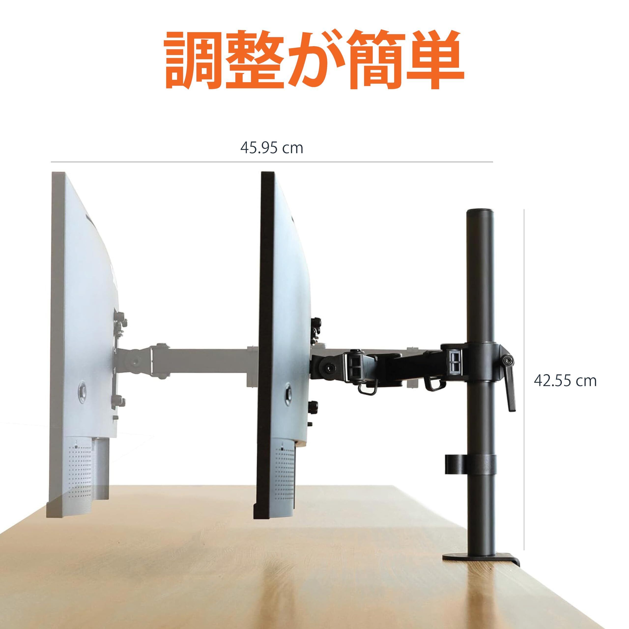耐荷重10kg : 1本のアームで最大22ポンド(約10kg)までのさまざまな重量とサイズのモニターをサポート。