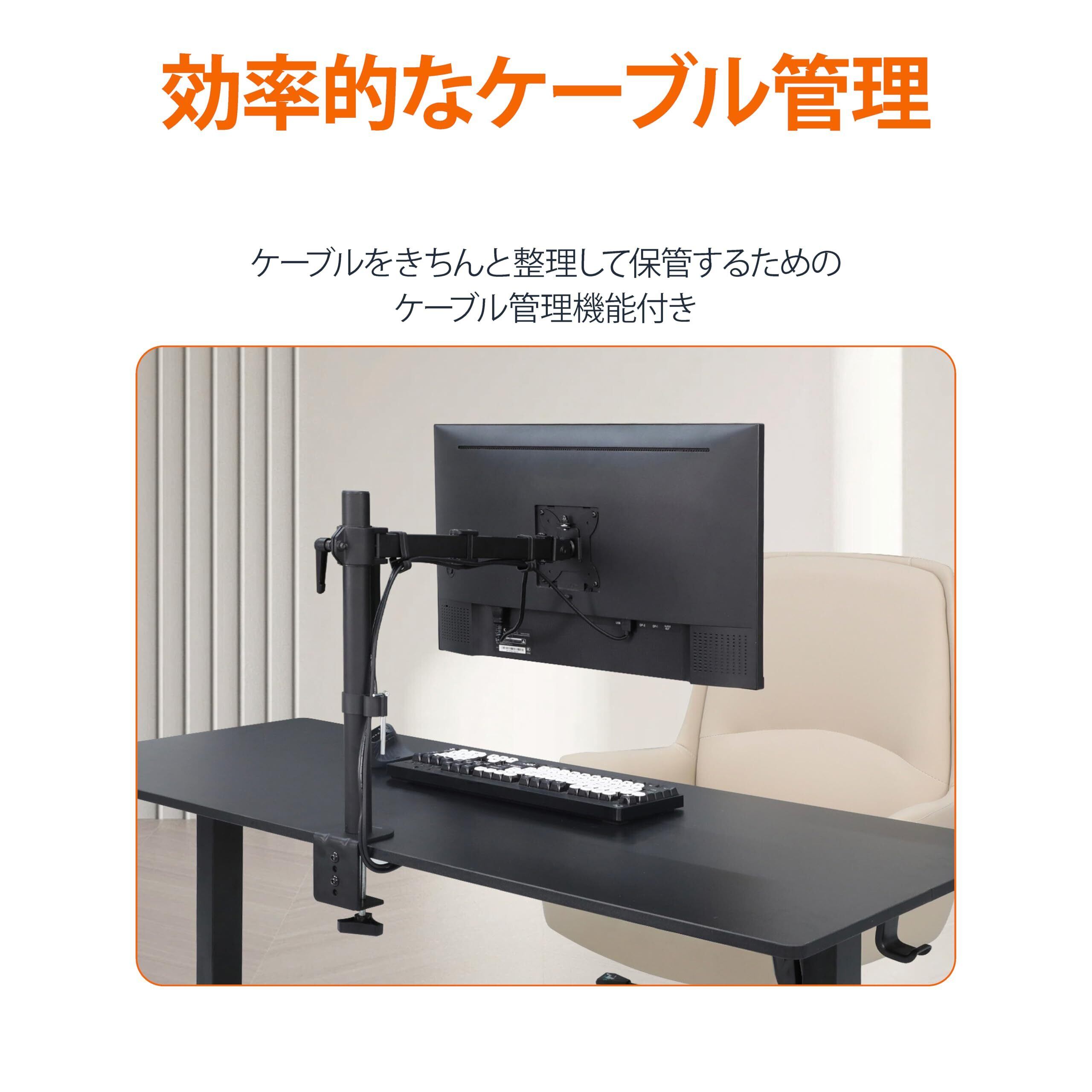 ベーシック シングルモニターアーム (最大32インチ) 耐荷重10kg 高さ調節可能 デスク設置用 ブラック
