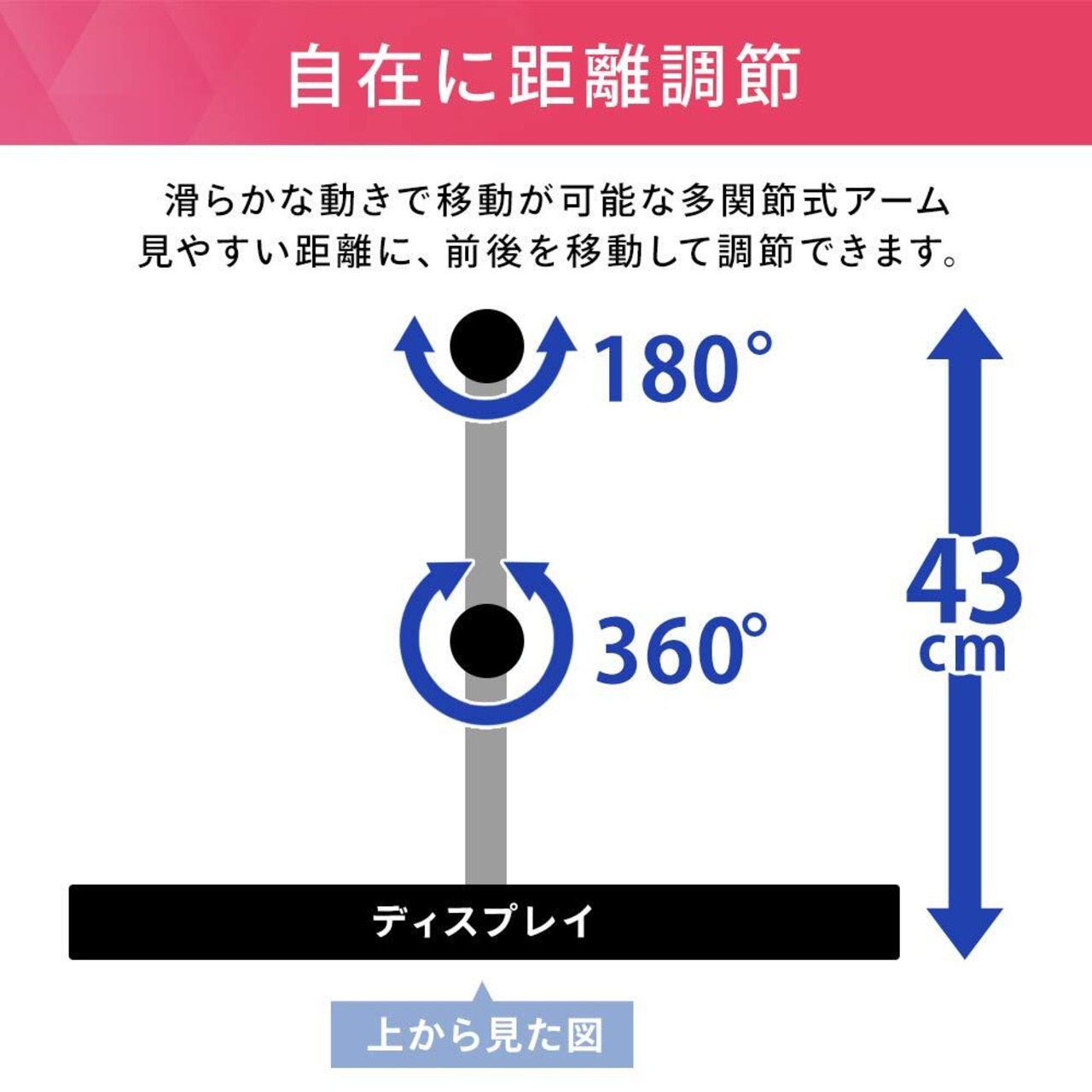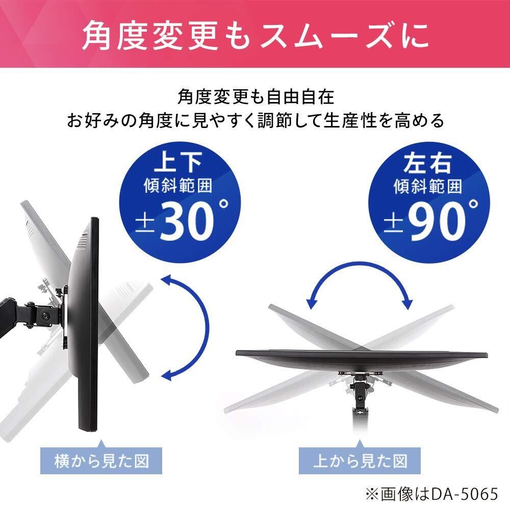 自由な調整が可能なこのモニターアームは、上下左右、回転機能が搭載されており、視聴角度をお好みに設定できます。長時間の使用でも疲れにくく、作業効率を大幅に向上させることができます。特にデスク上のスペースを最大限に活用したい方に最適です!