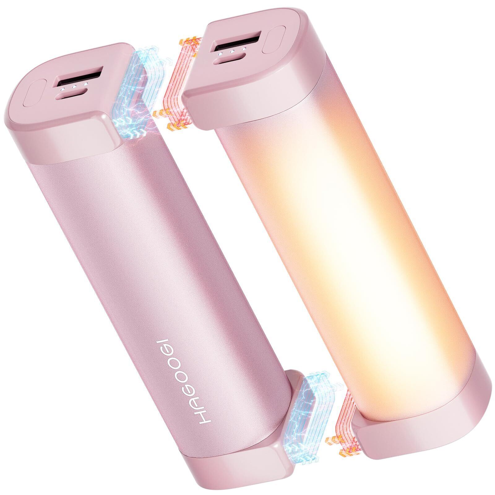 HAGOOGI (ハゴオギ) 充電式カイロ 360°全面発熱 3秒急速発熱 3階段温度調節 電気カイロ モバイルバッテリー機能 大容量 クリスマスプレゼント 10000mAh 14時間連続発熱可能 【新型磁気式/分離式設計】 小型 超軽量 持ち運びやすい 5V/2A急速充電 旅行 出張 通勤通学用 (ピンク)