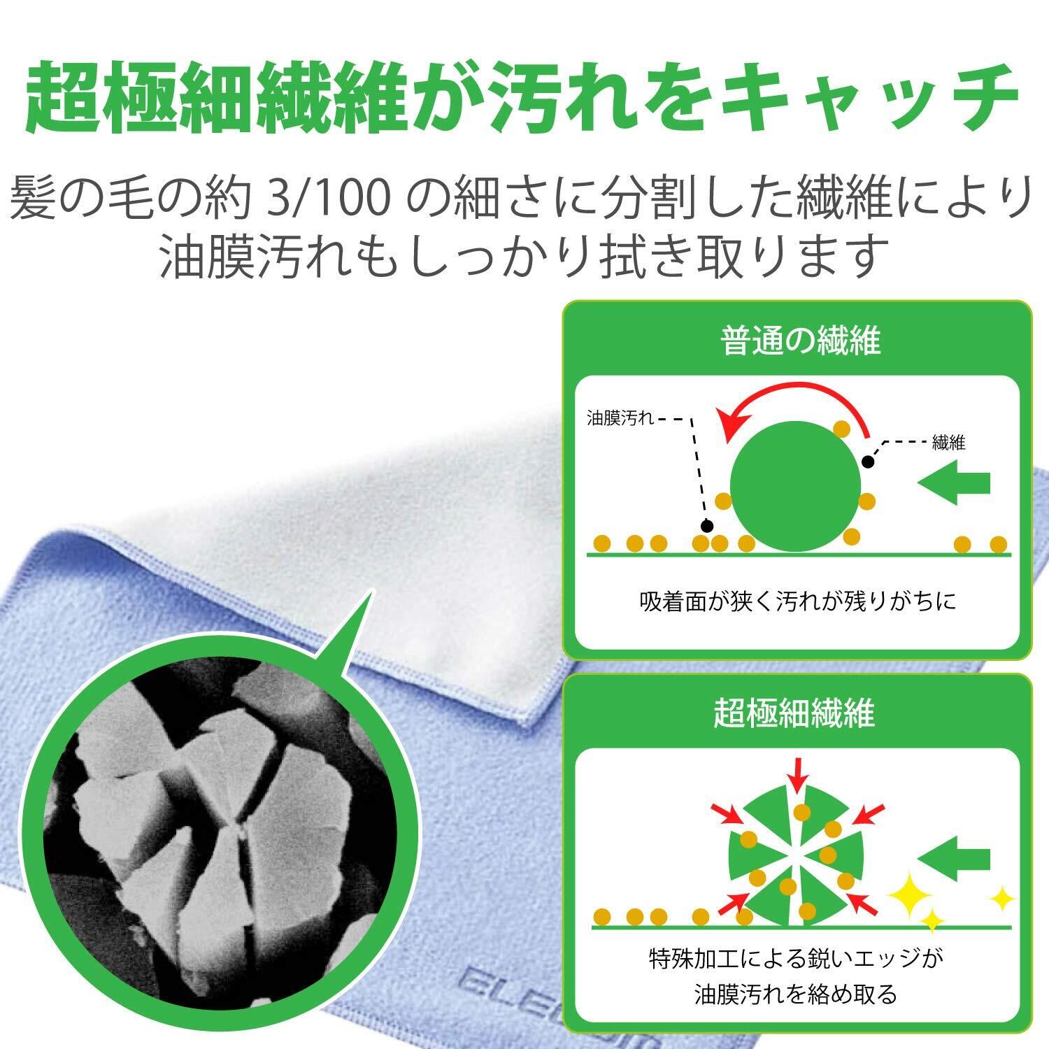 指紋や手アカなどのしつこい油膜を拭き取ってください。髪の毛の約3/100という細さに分割された超極細繊維の鋭いエッジが汚れをしっかり取り除きます。