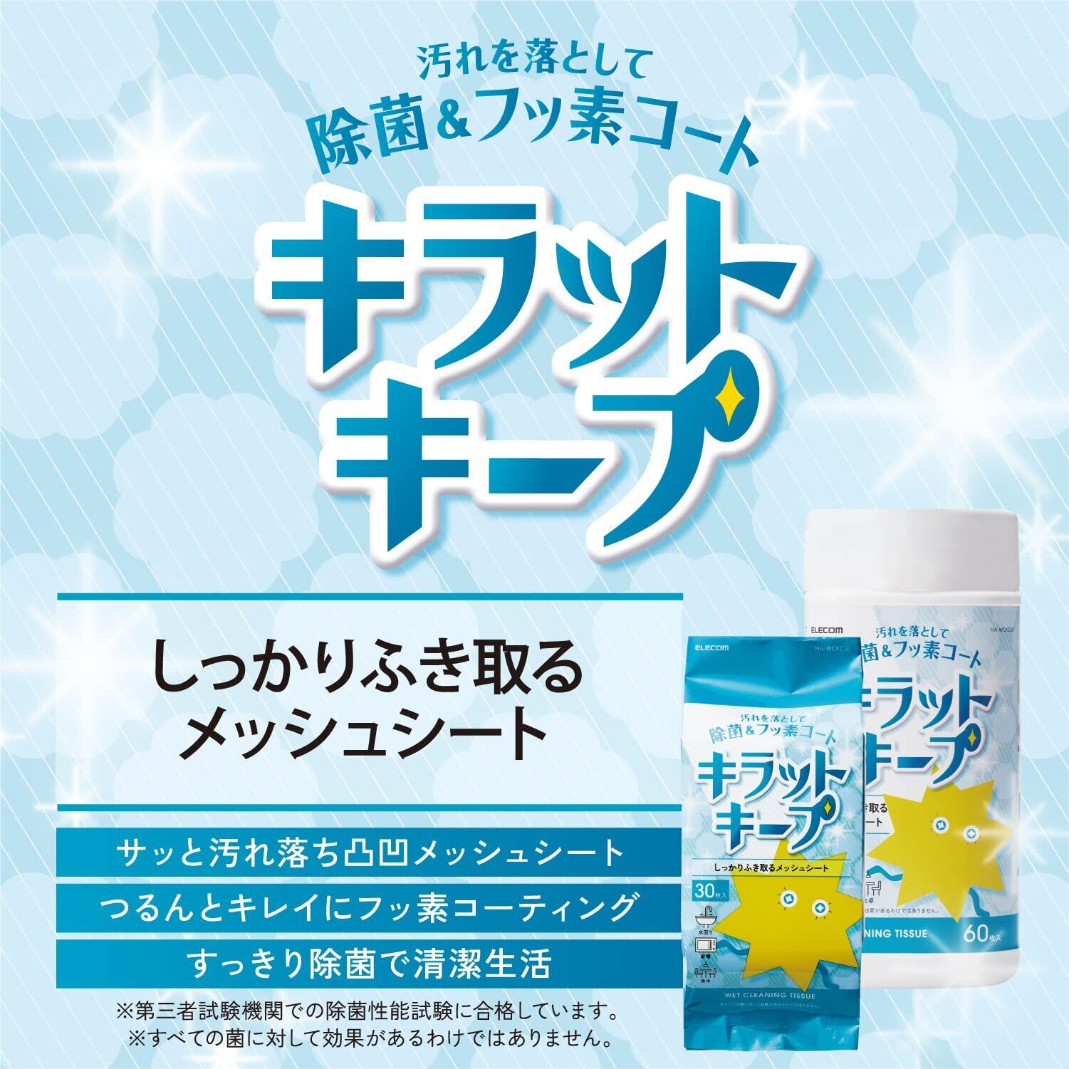 【在庫処分】エレコム 防汚 シートクリーナー ウェットティッシュ キラットキープクリーナー 【 除菌 汚れ落とし 防汚 フッ素コート 】 時短 60枚入り HA-WCKC60