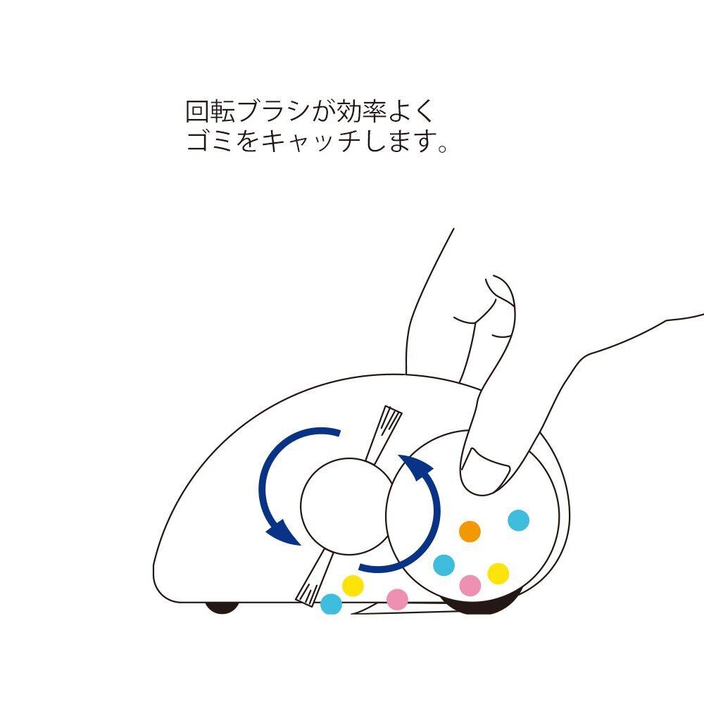 指先で前に向かって軽く転がすだけと、社内の小さいほうきがパタパタと動き、小さなゴミを集めることができます。
